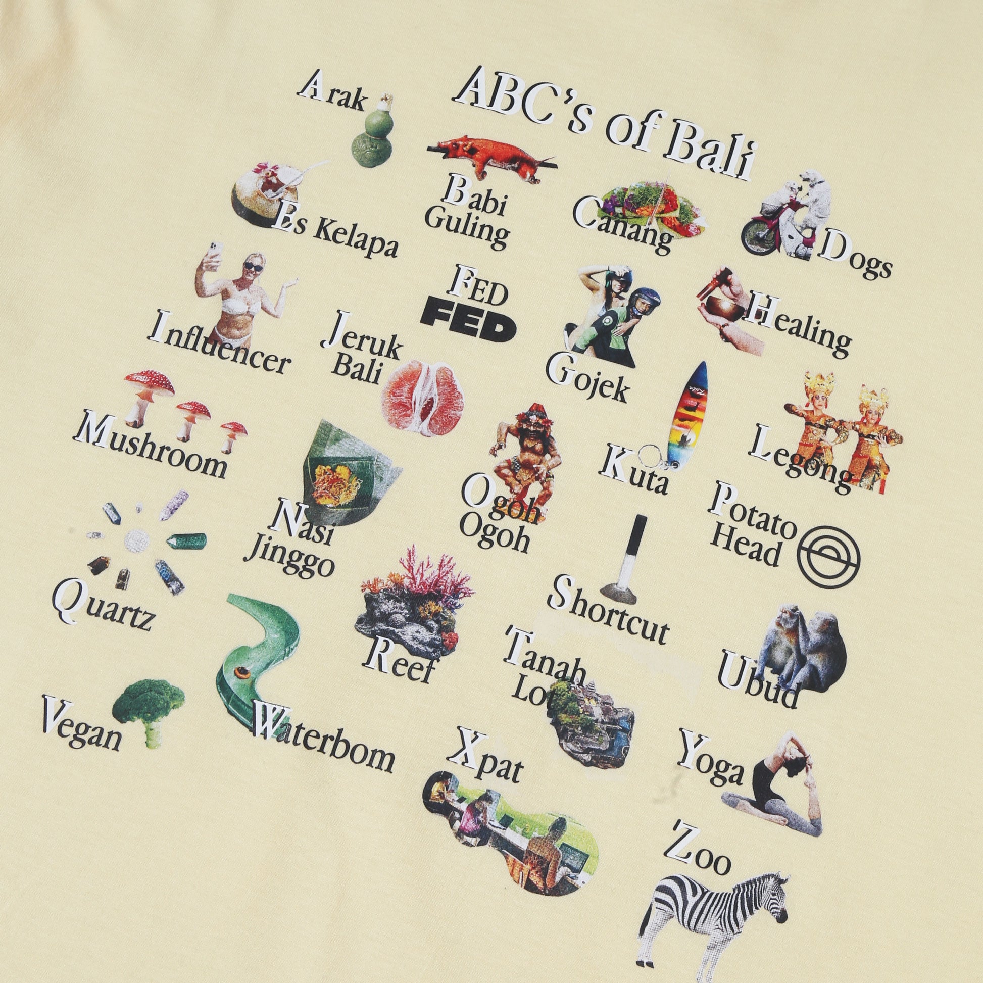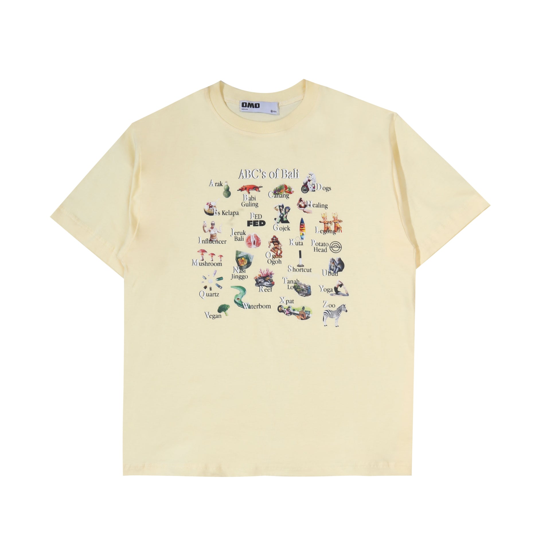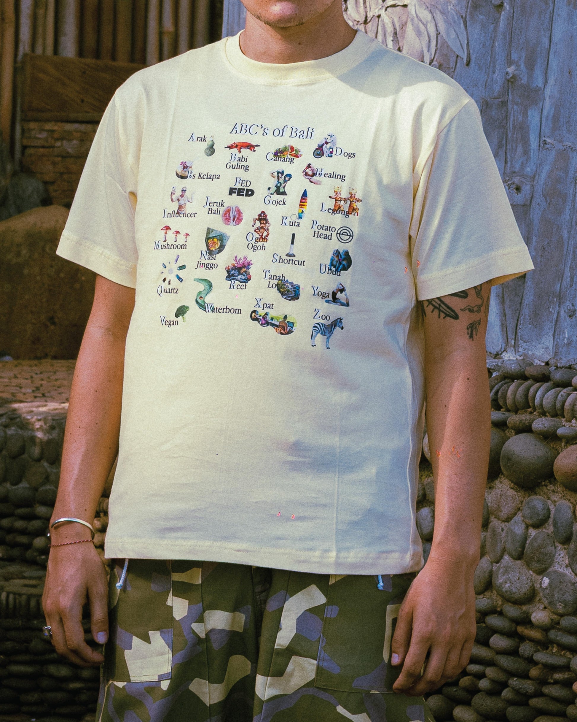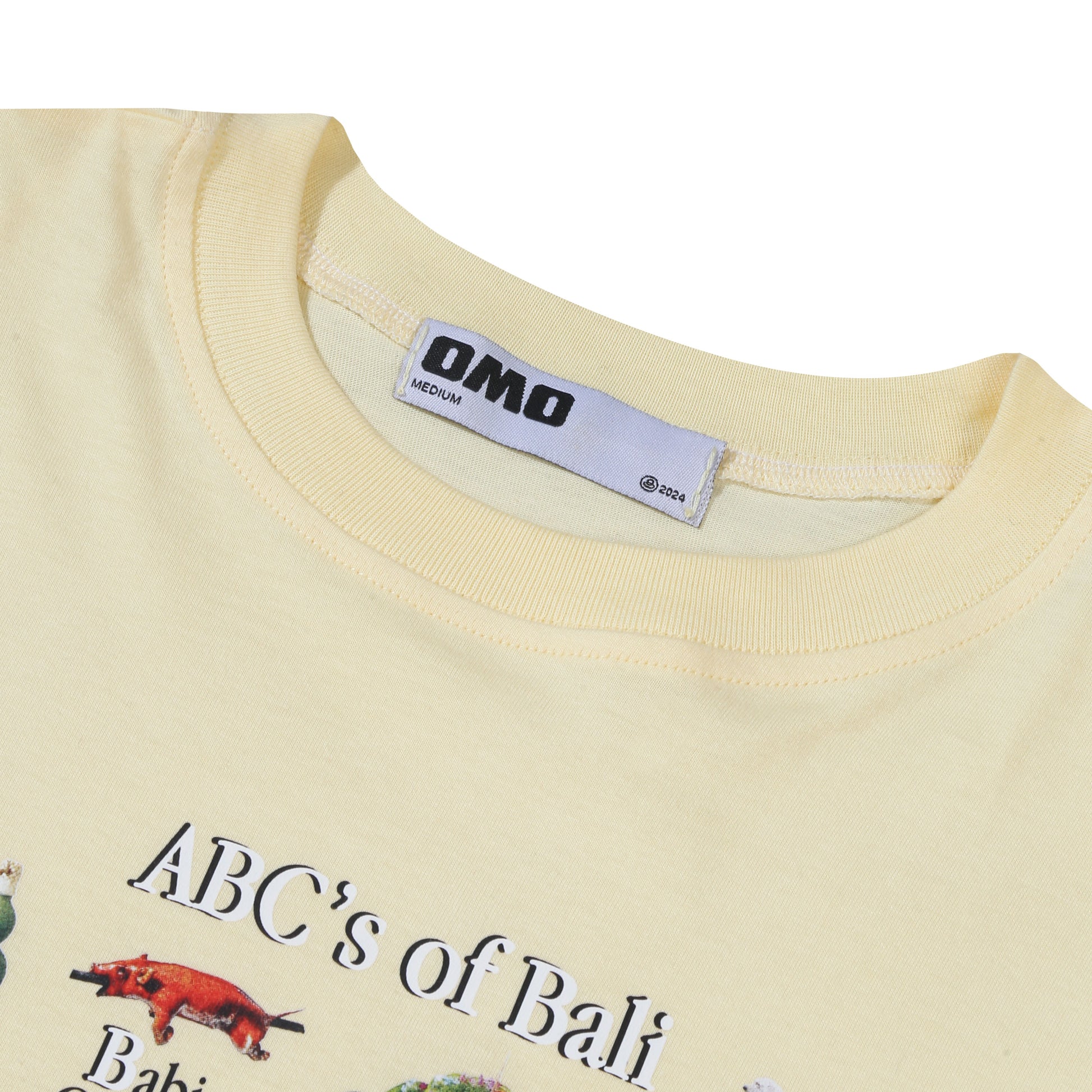 "ABC’s of Bali” printed graphic T-shirt with a boxy fit.