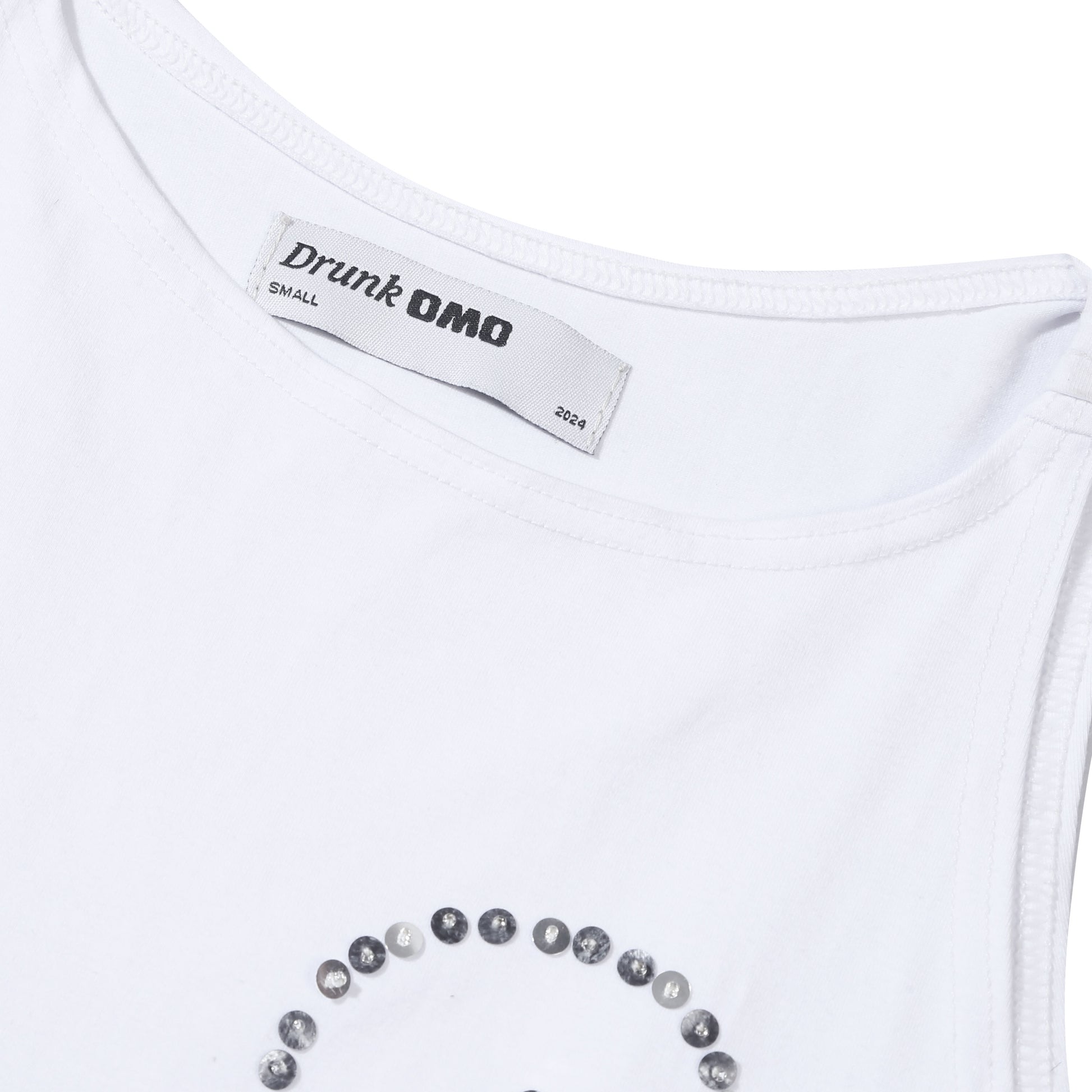 Women's assymetrical tank top with ties on one shoulder and sequin spiral pattern