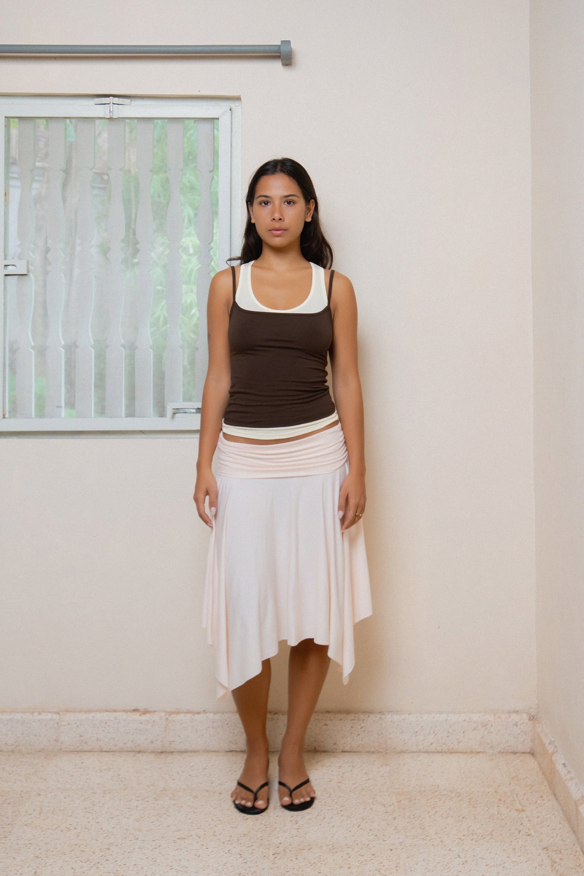 A skirt with movement, shape, and just the right amount of drama. The foldover waistband lets you play with the rise, and the flowy asymmetric hemline adds effortless movement and shape. The drape is soft, flattering, and just structured enough to feel polished.