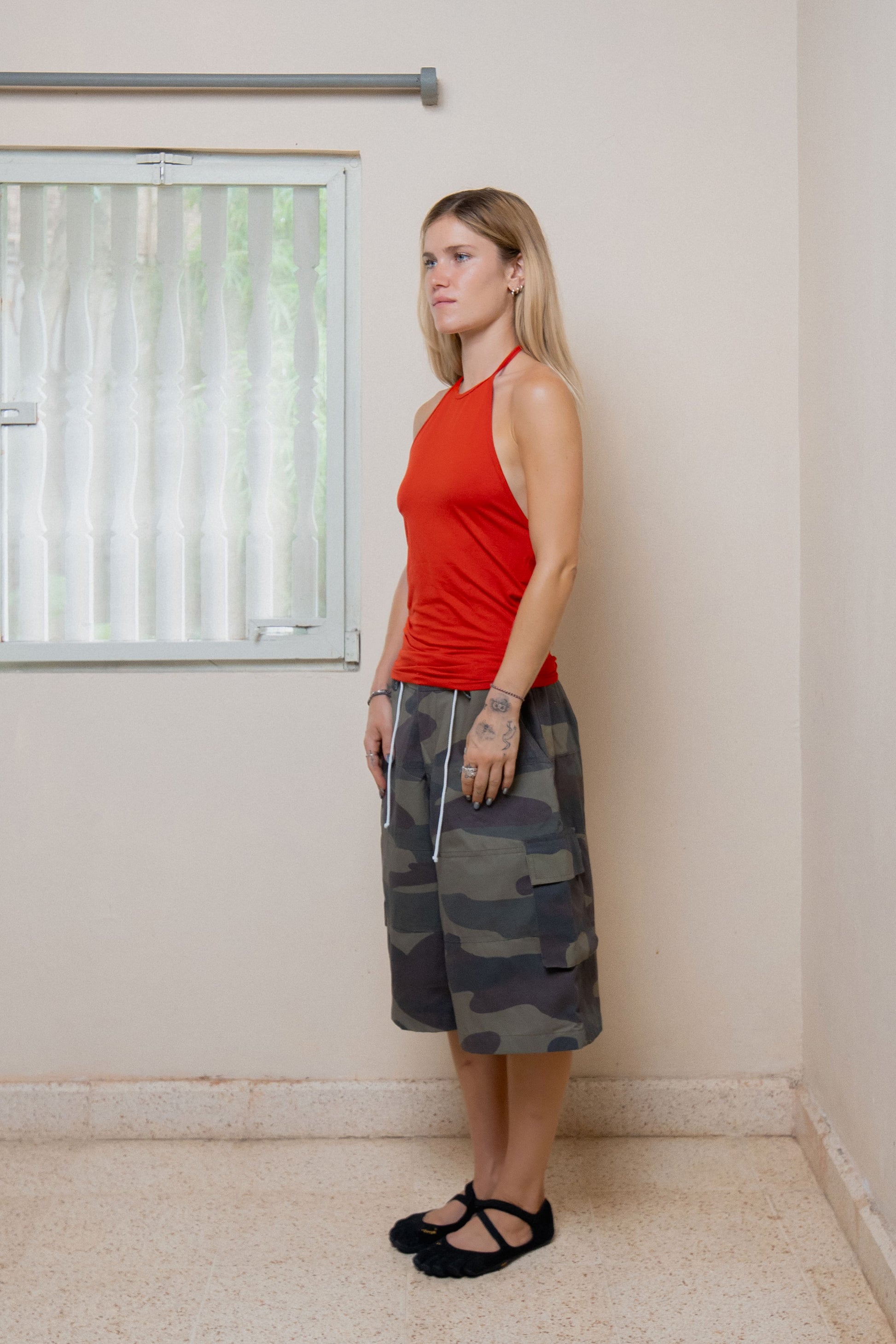 Minimal front, major back energy. This halter top is designed with a sleek high neckline and an open back, finished with delicate straps that keep it all together. Made from soft, lightweight fabric that drapes just right, it’s equal parts effortless and elevated.