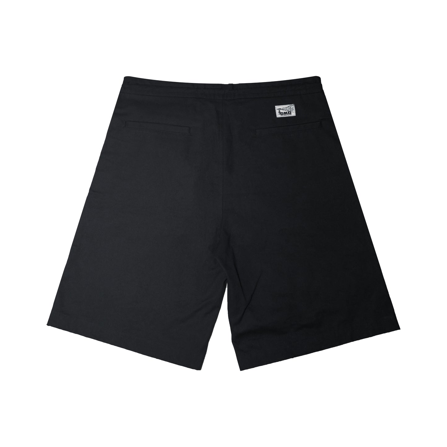 Low rise boxy shorts with pleated detail in front, two front side pockets, two back welt pockets. Adjustable waist rope with stopper.
