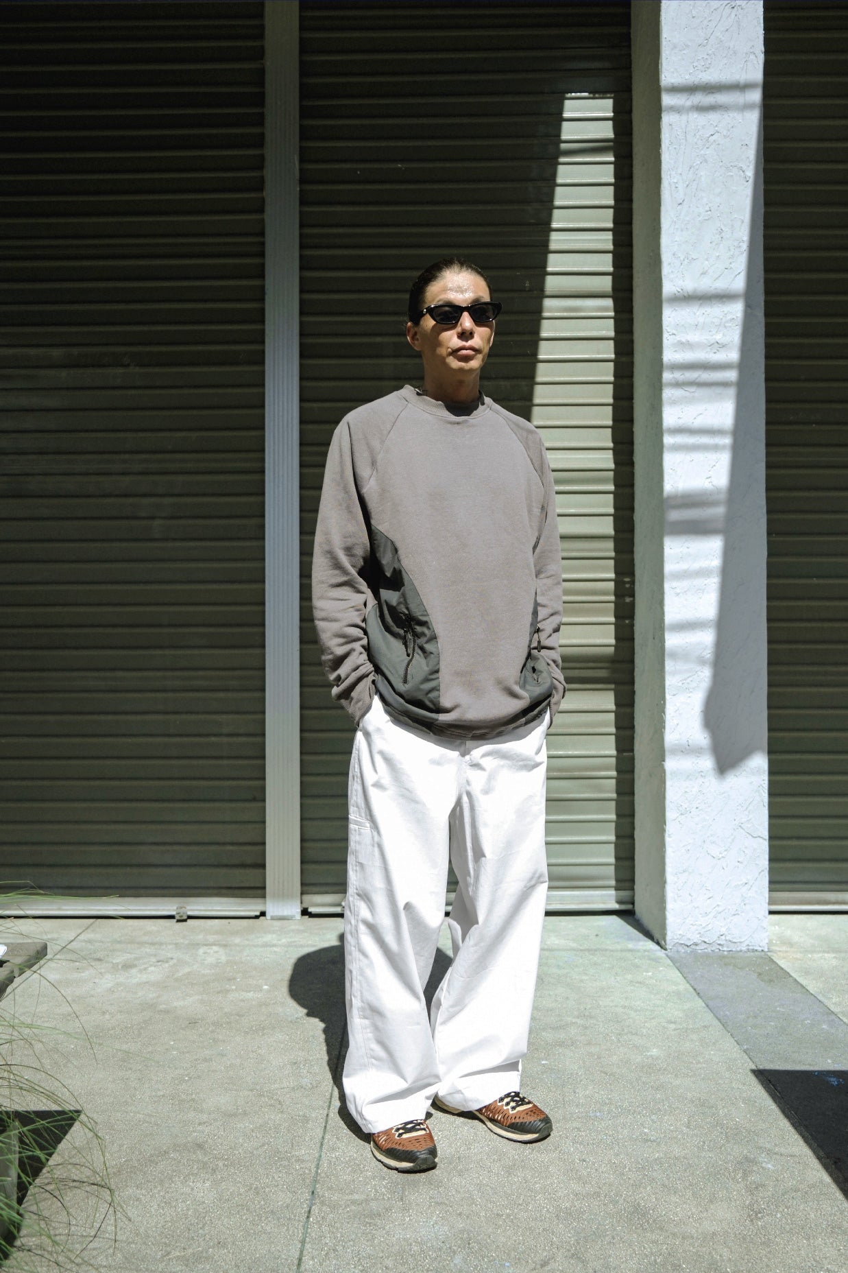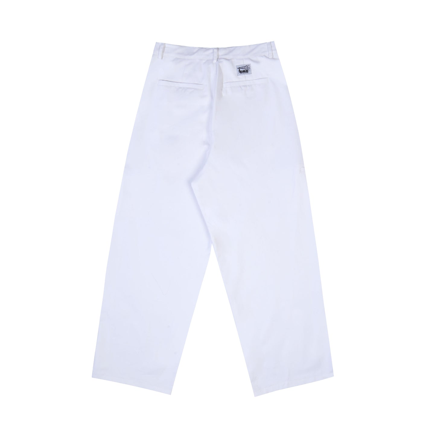 Straight cut work pants with six functional pockets and belt loop waistband.