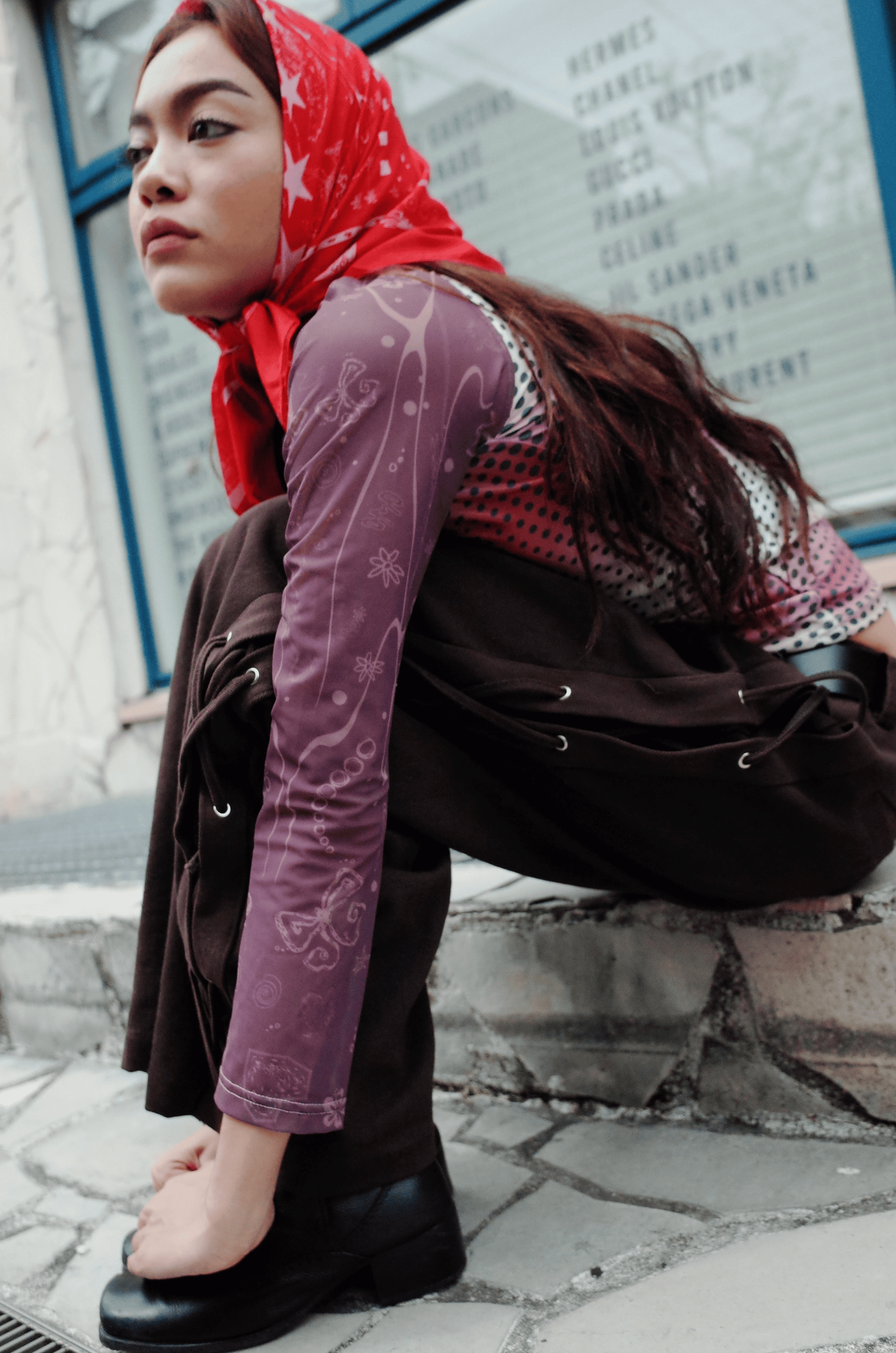 Original doodles from DEAR and OMO graphic girls made into a bandana. available in two size S: 50x50 and M: 75x75