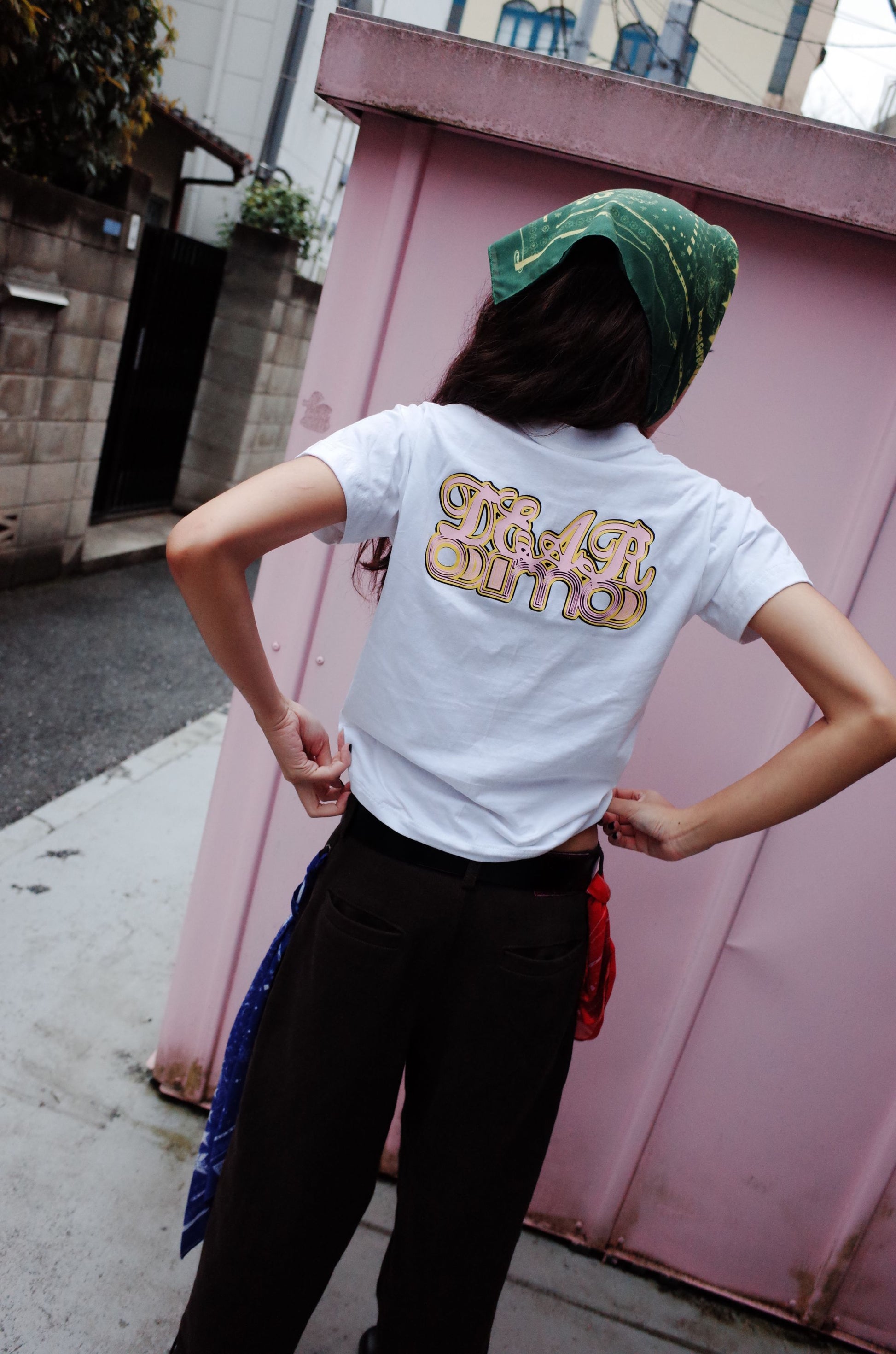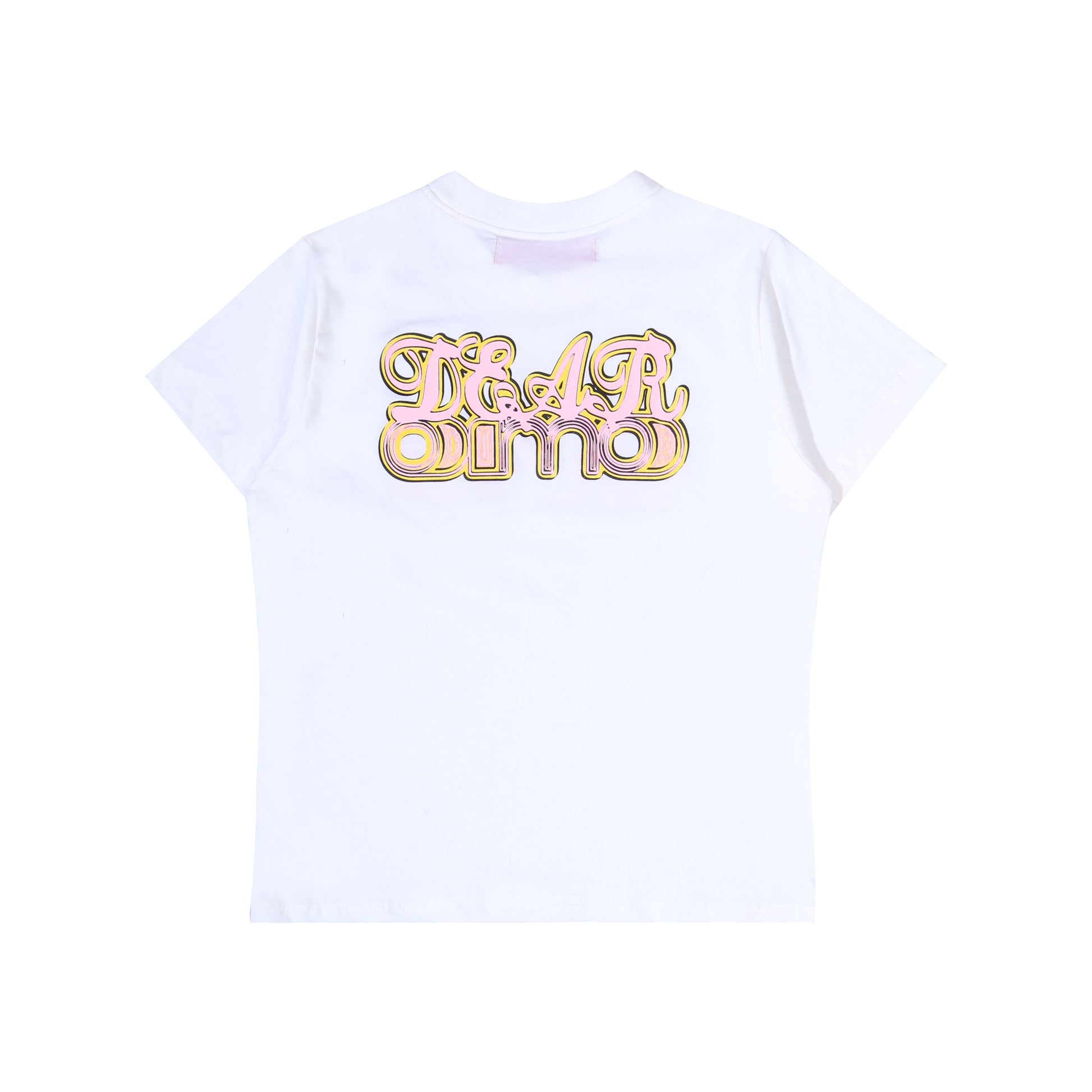 Baby Girl cut t-shirt with Dear OMO 2025 logo stamp in front and back.