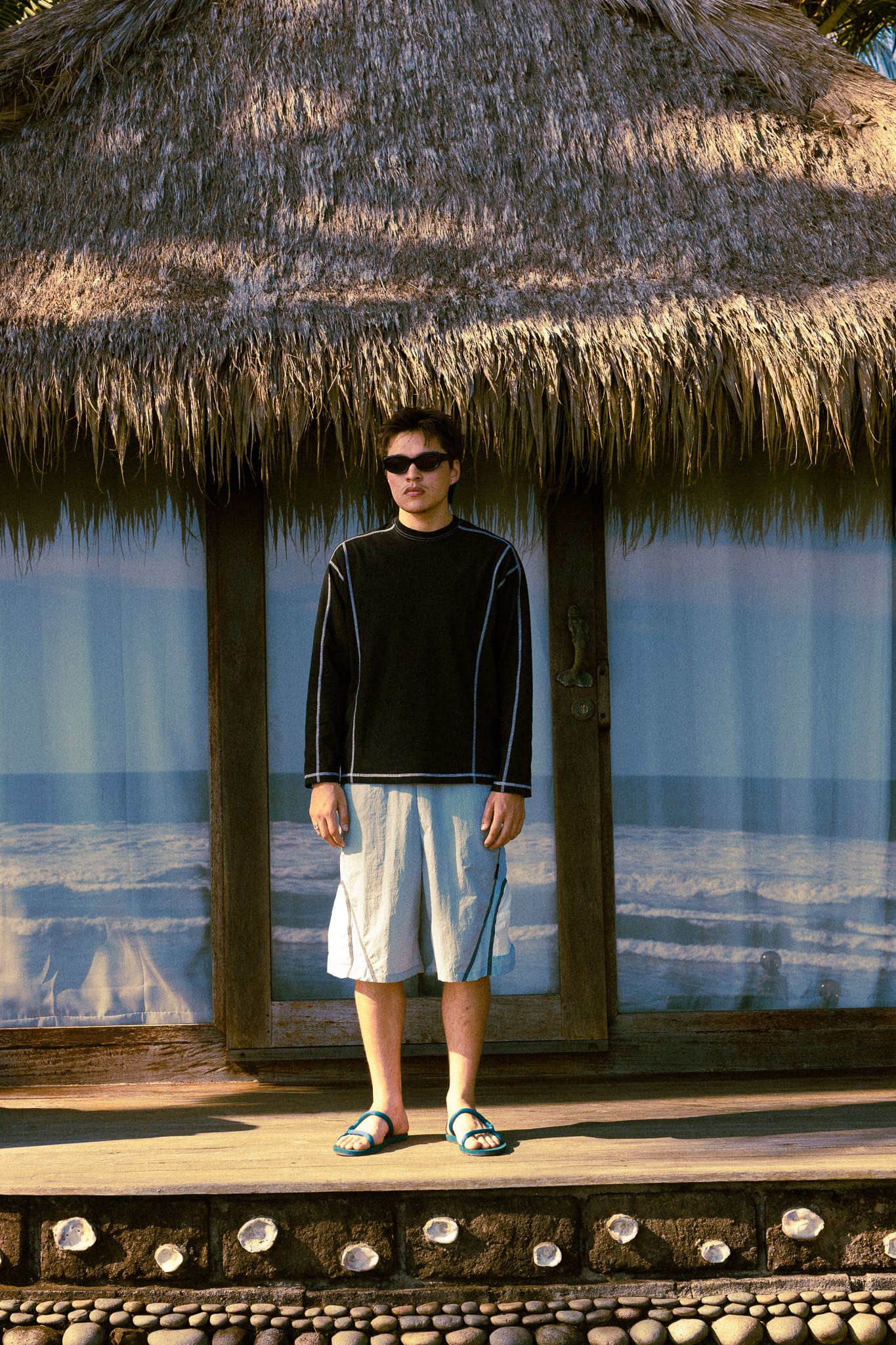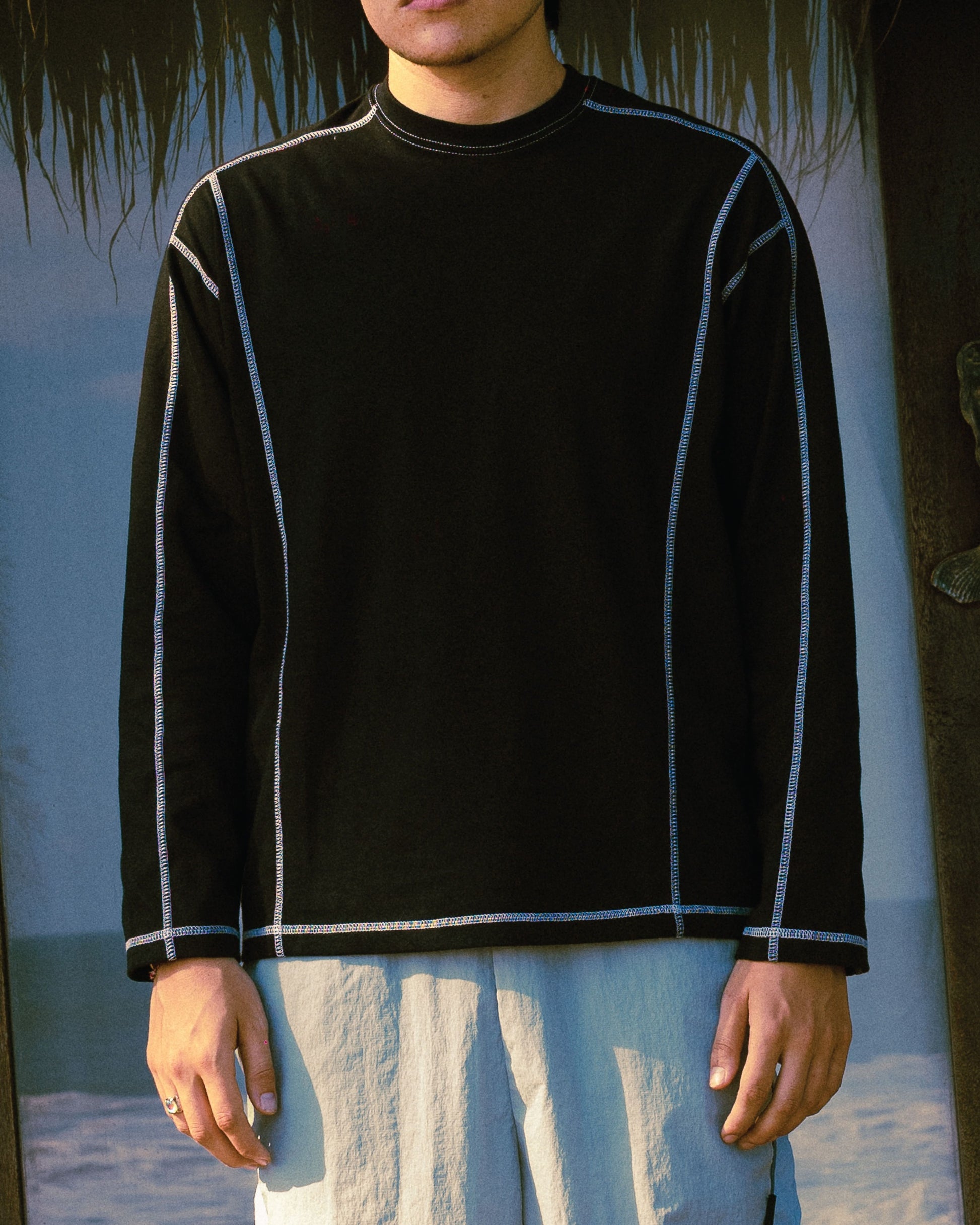 Long sleeve raglan t-shirt with contrast panel detail and contrast stitching.