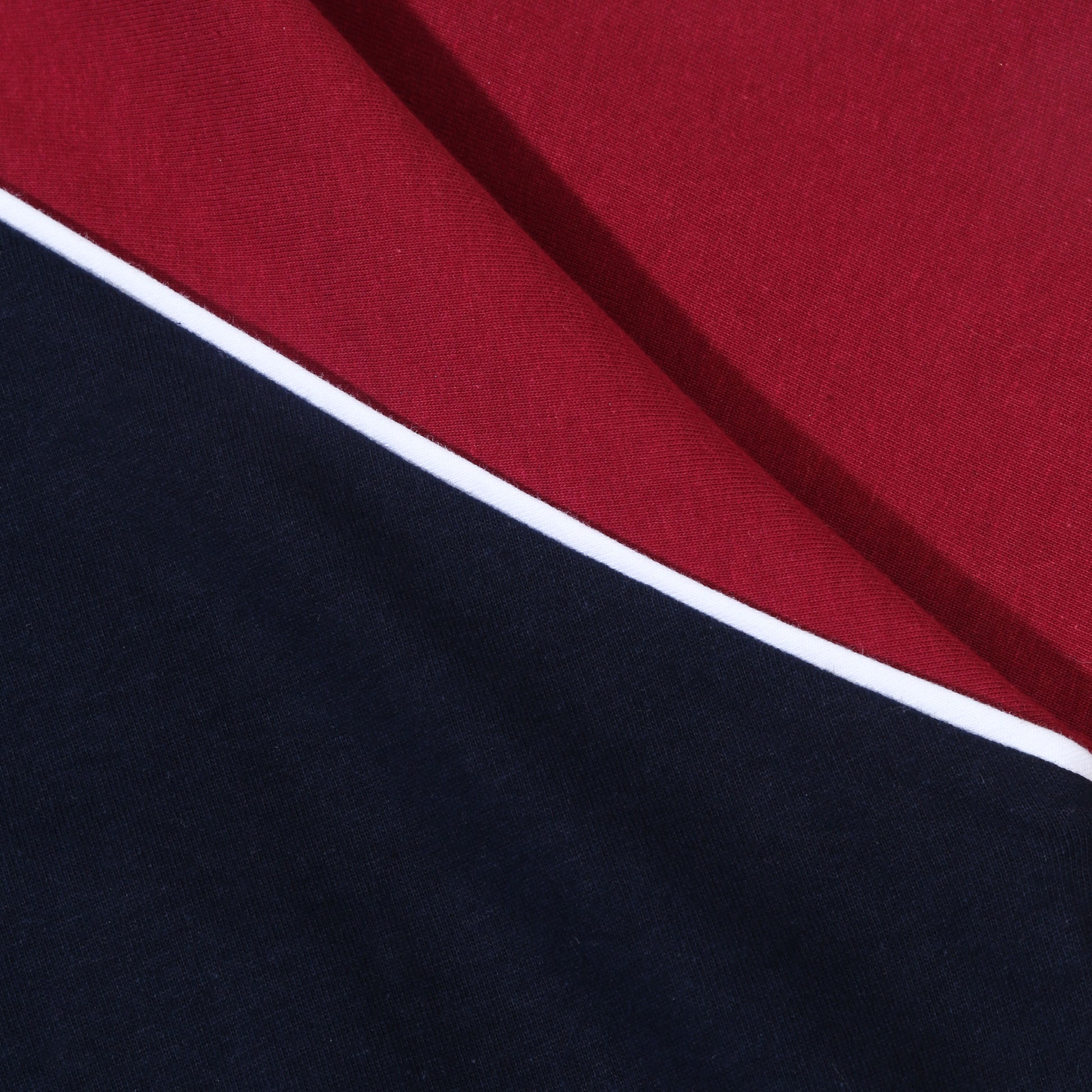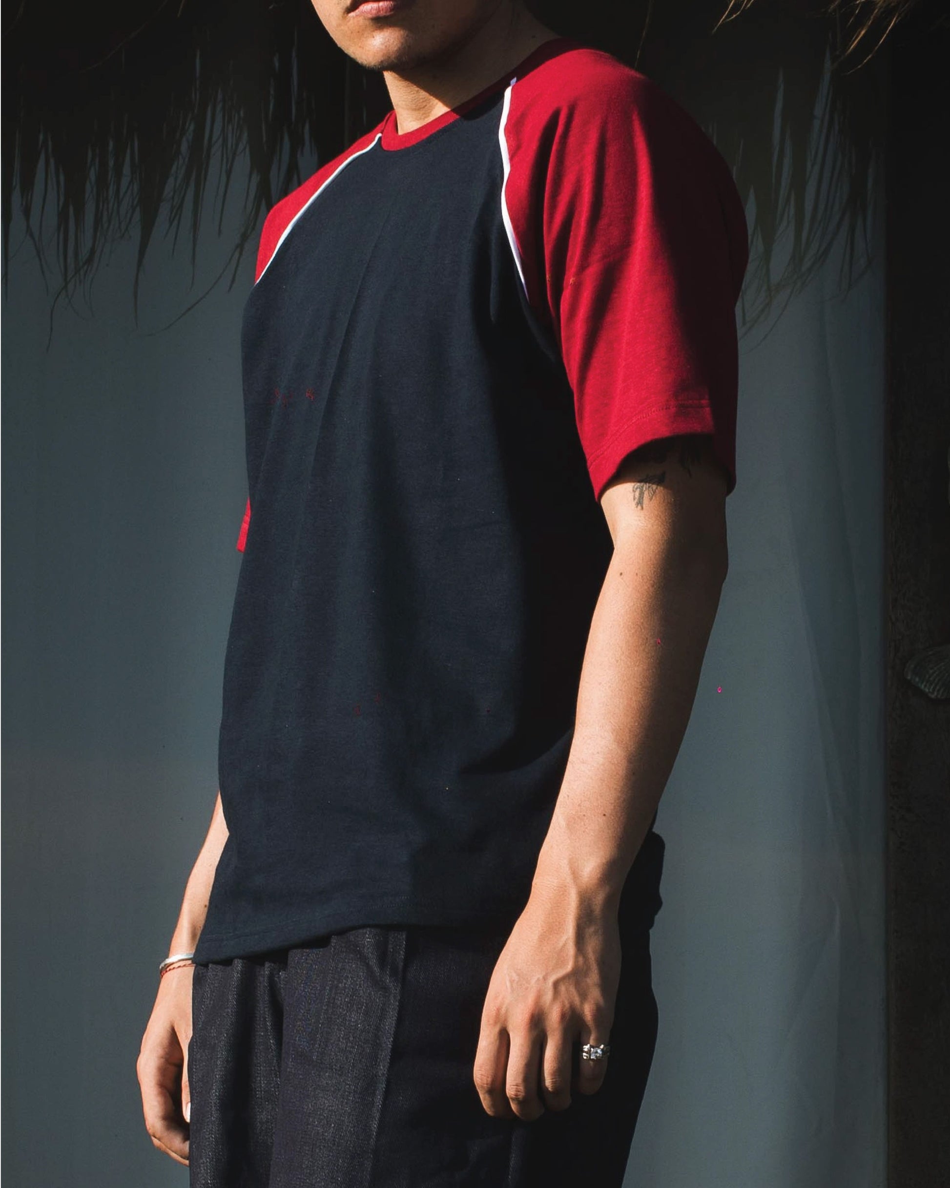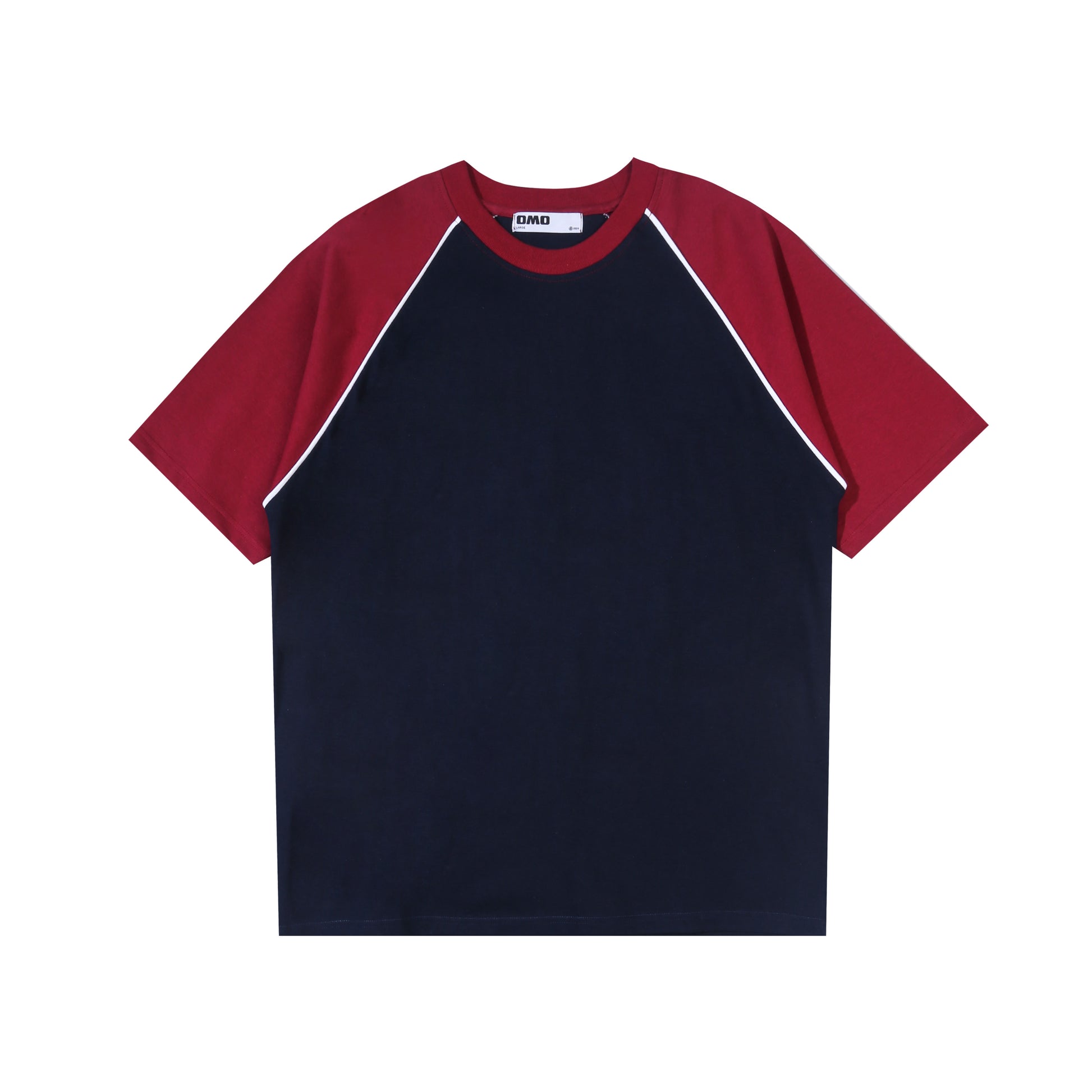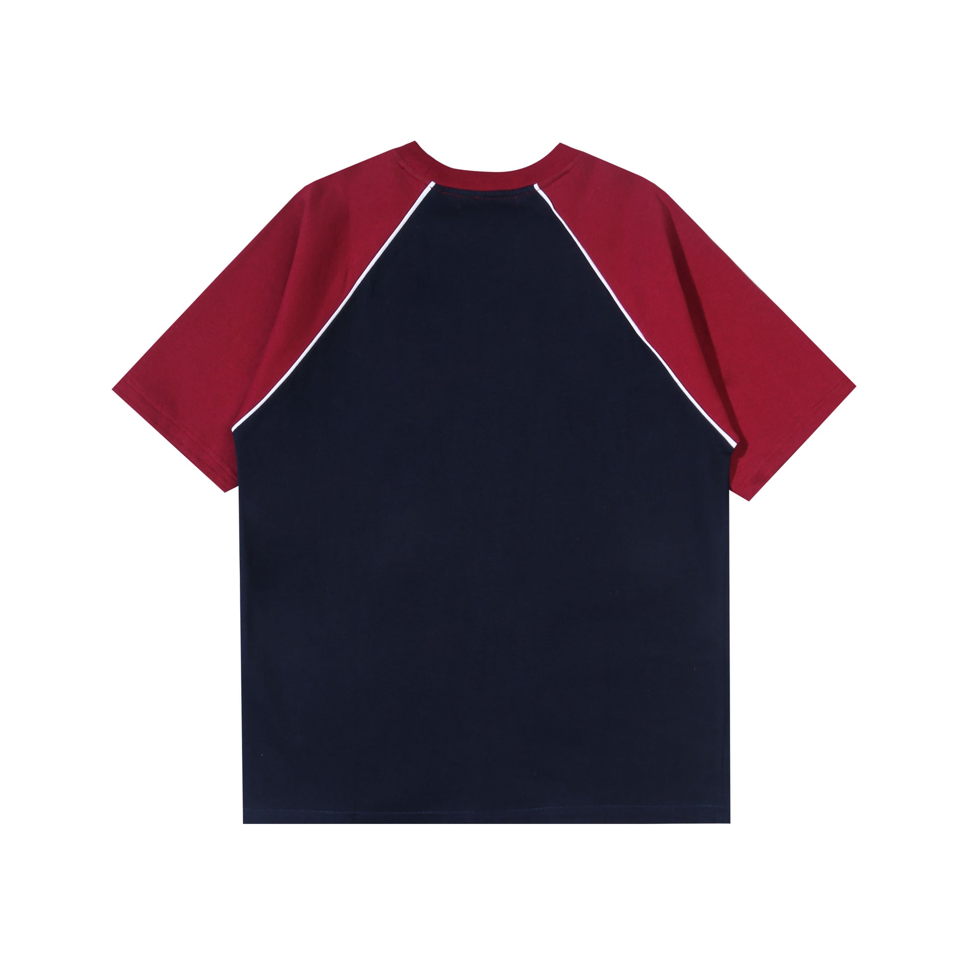 Short sleeve raglan t-shirt with contrast panel detail and contrast stitching.