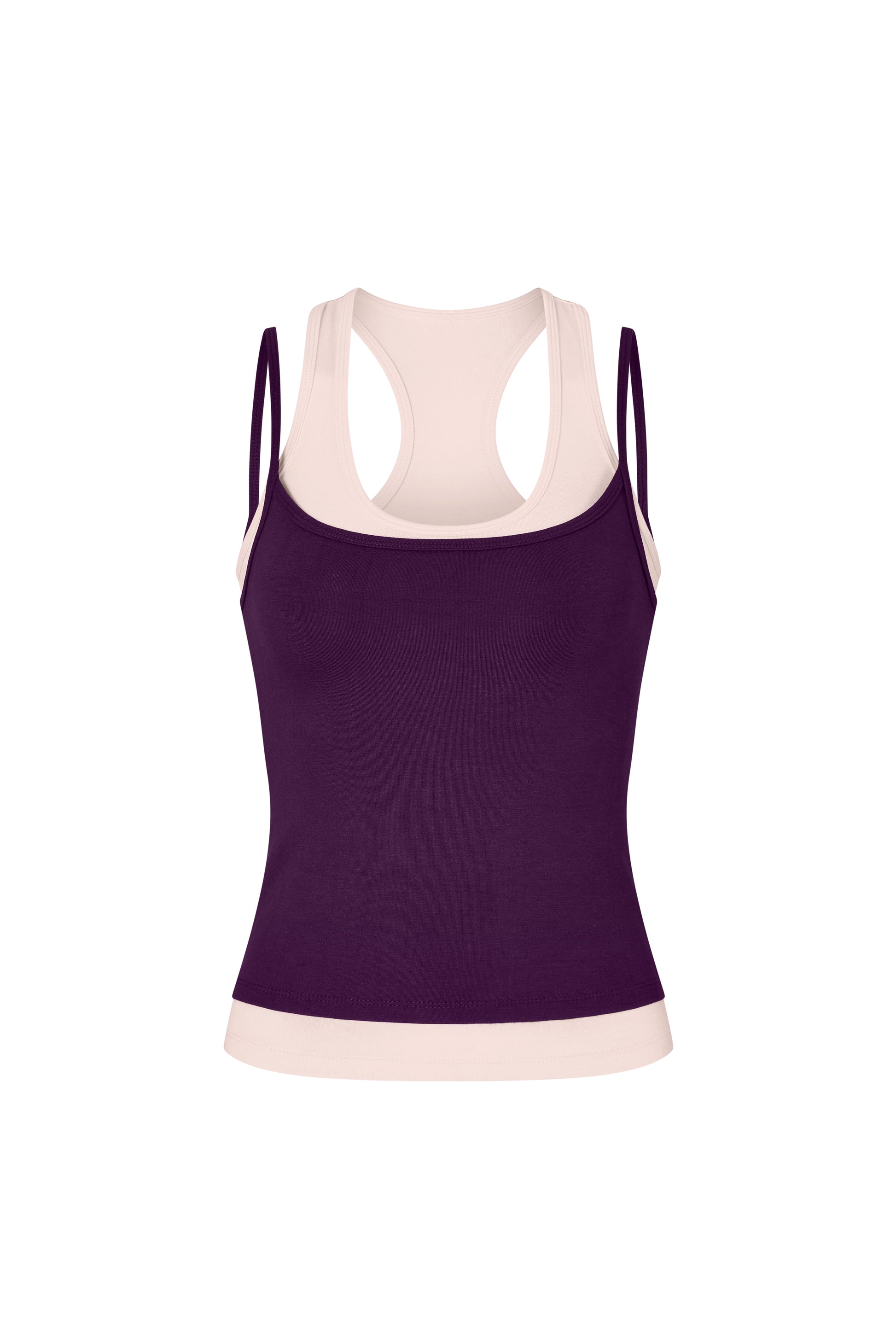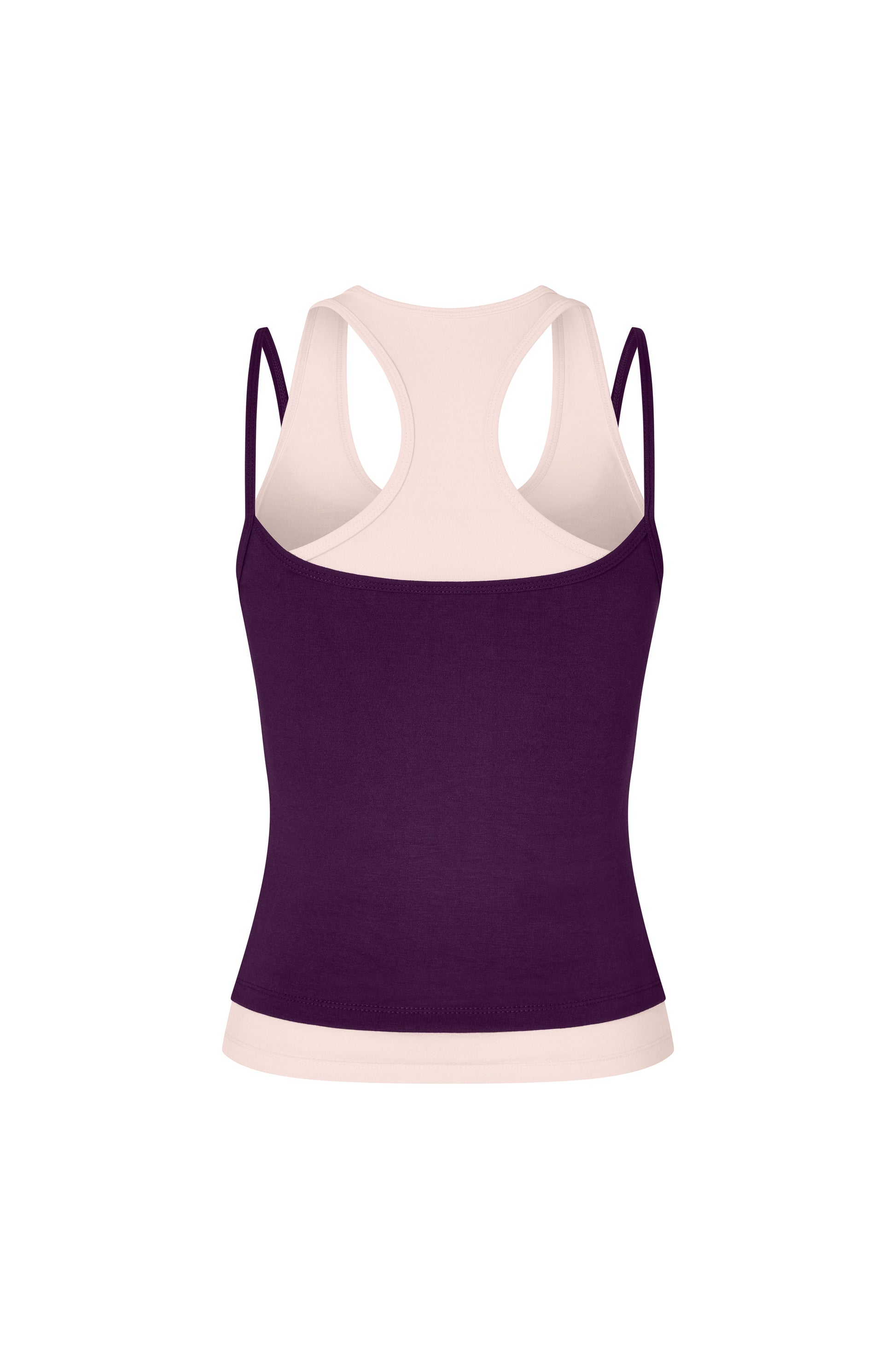"Double the layers, double the vibe. This top is designed with a built-in layered look — spaghetti strap neckline over a classic crew neck, giving you that styled-up feel without the effort.