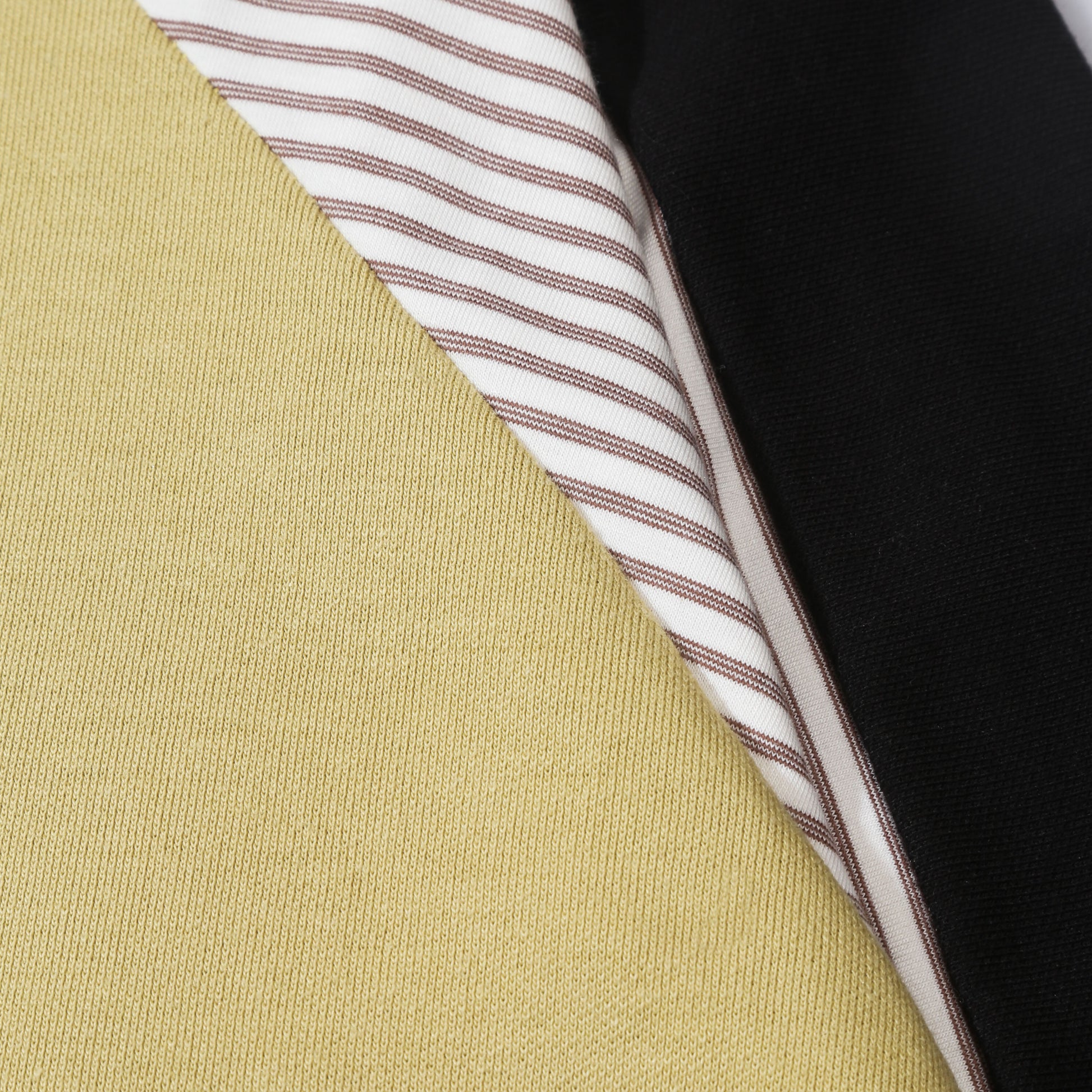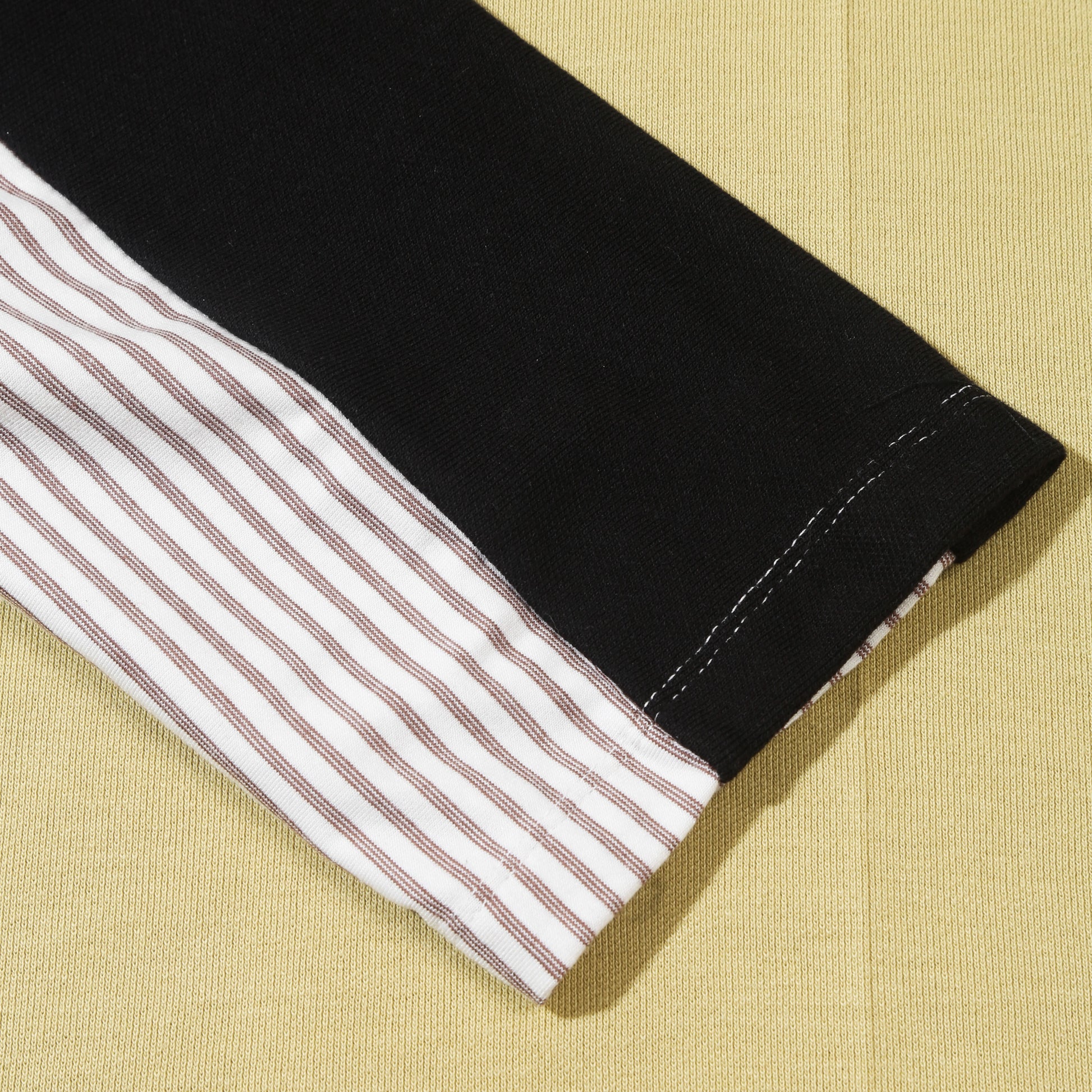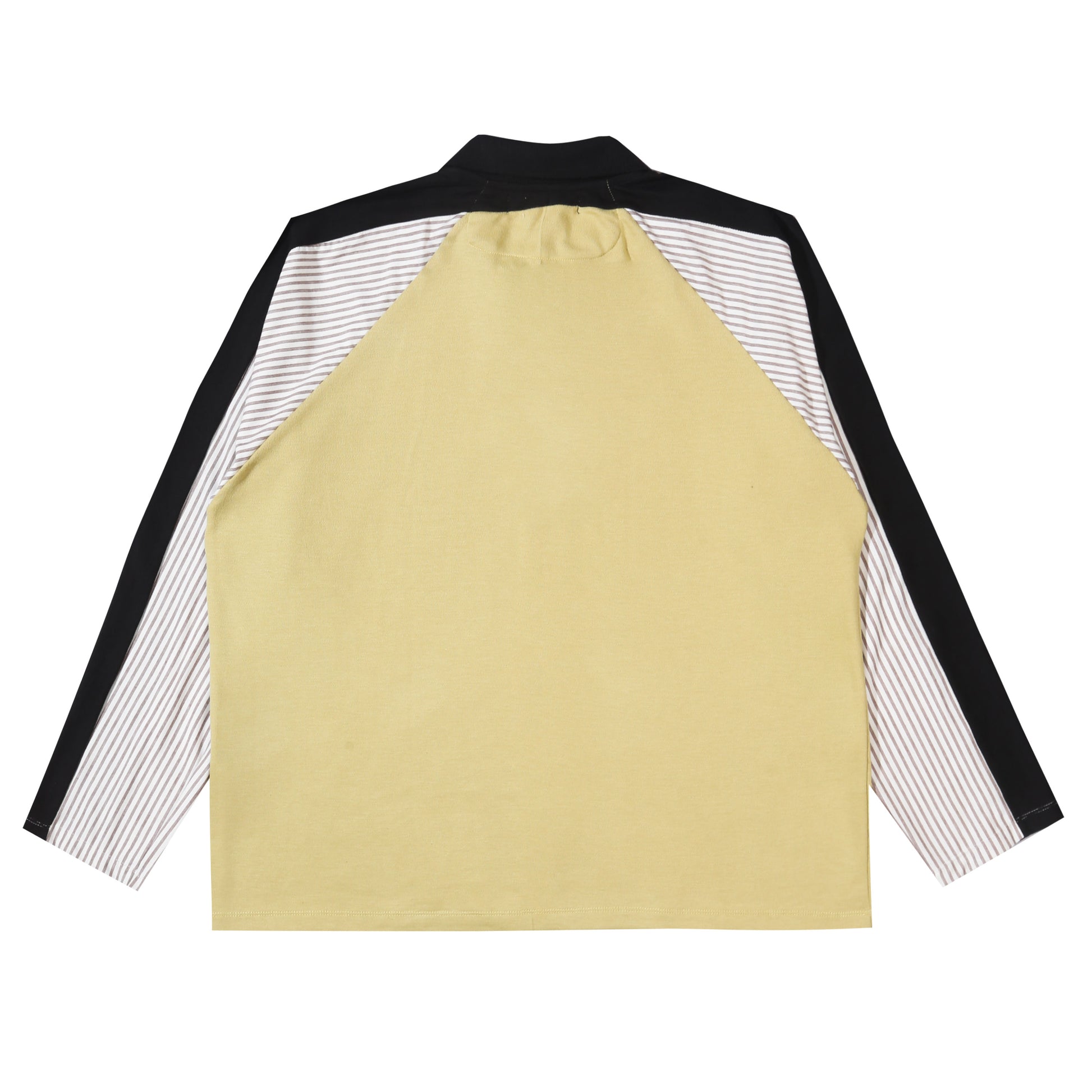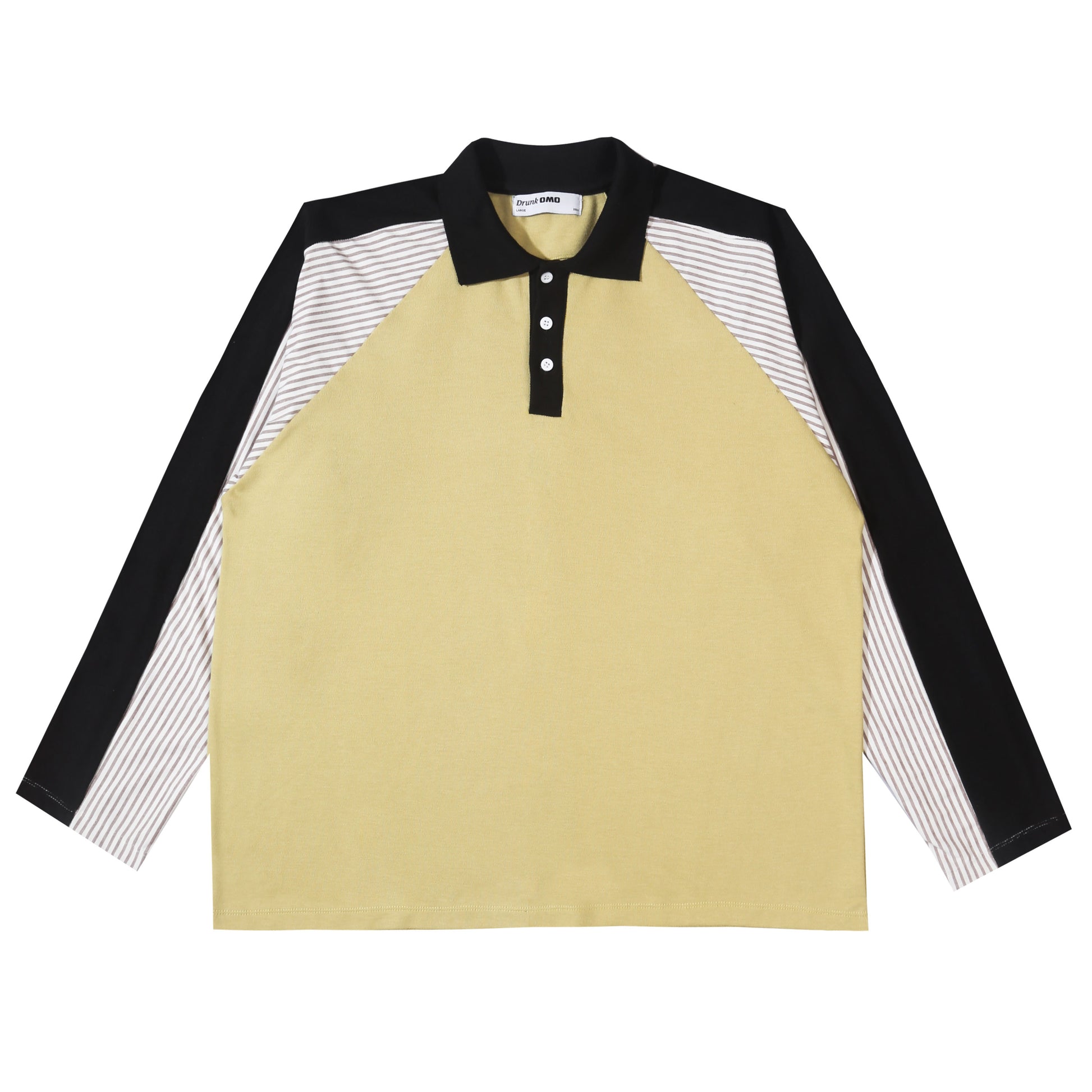 Pique oversized long sleeve polo shirt with two color block combination and stripes pattern.