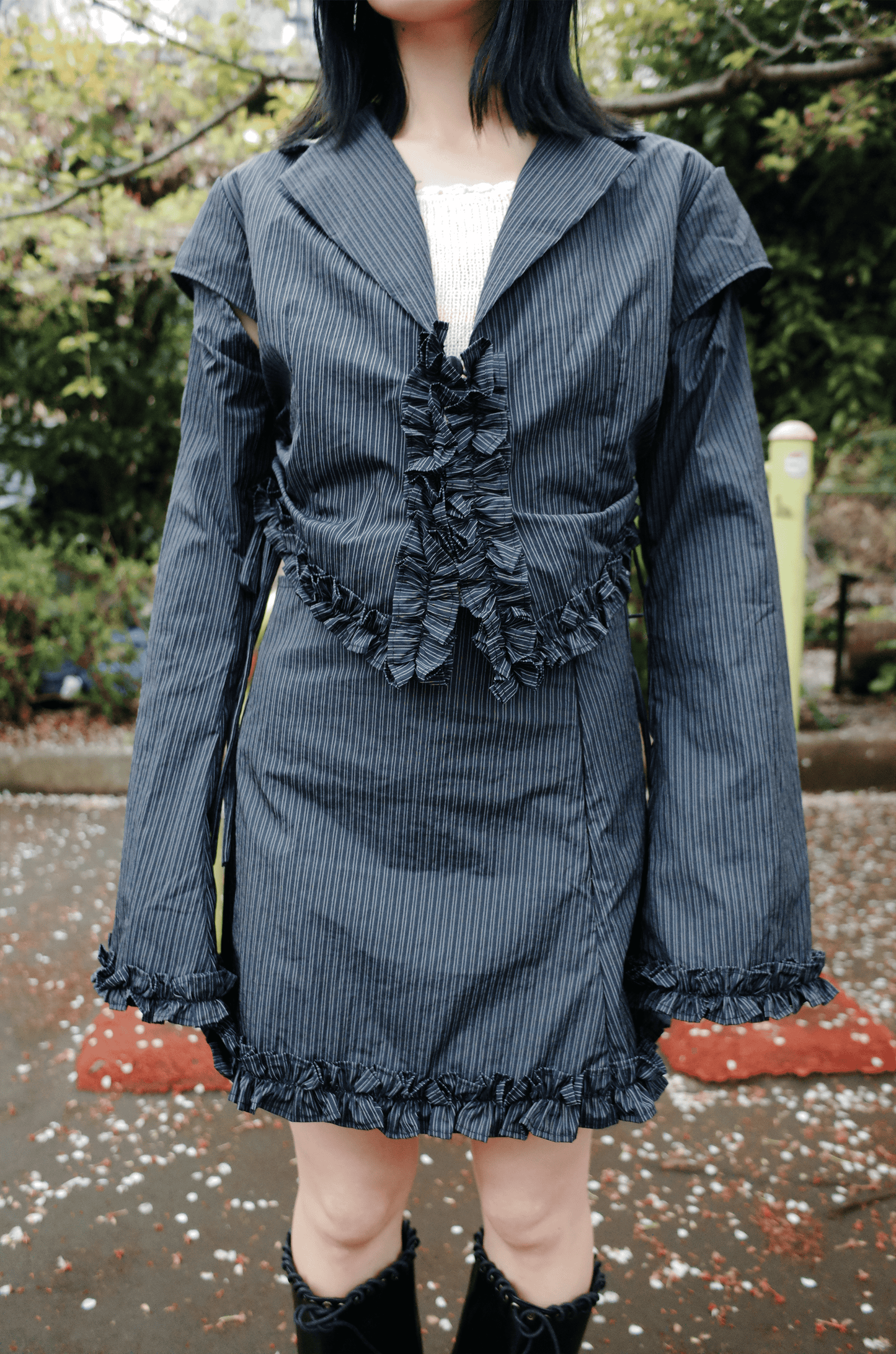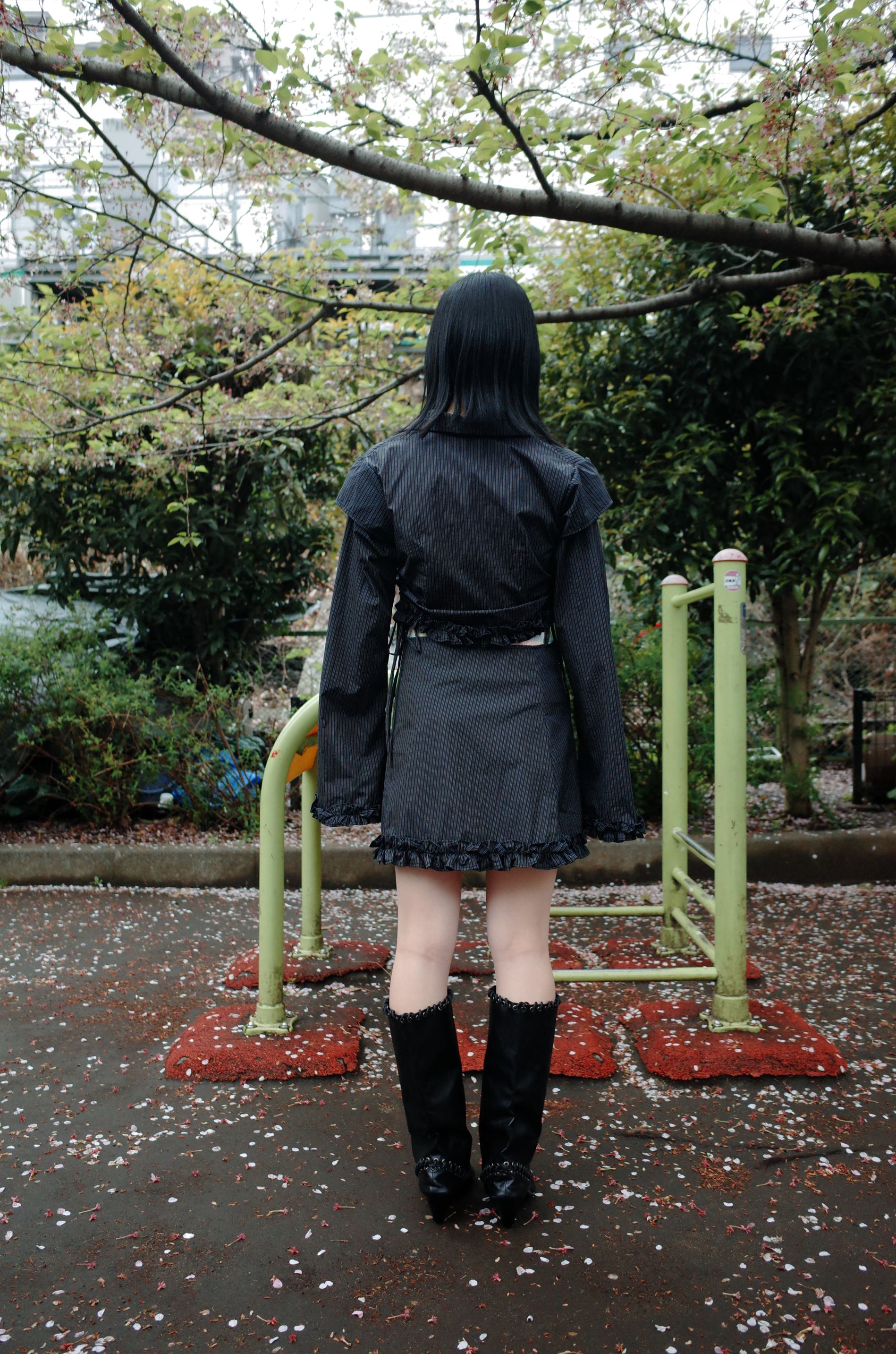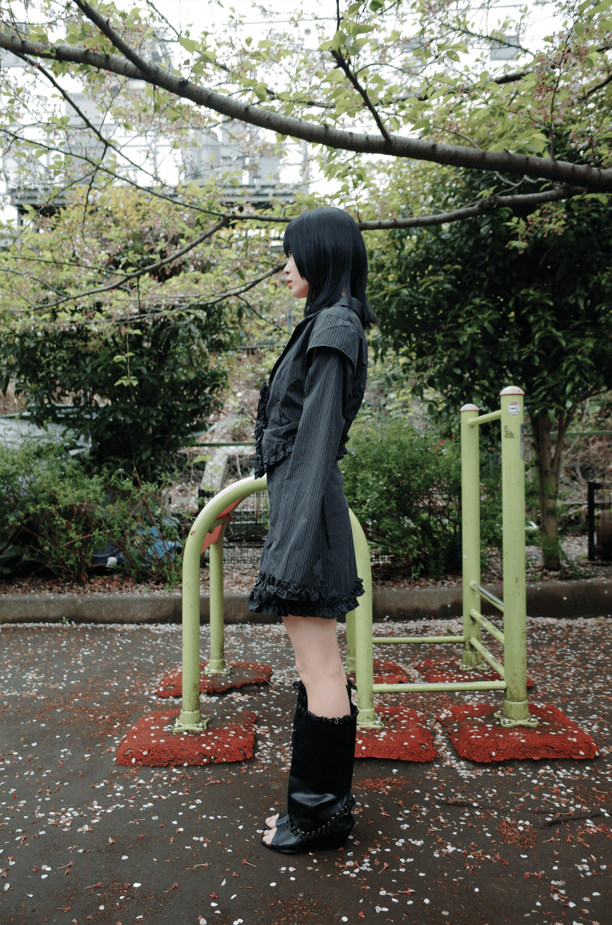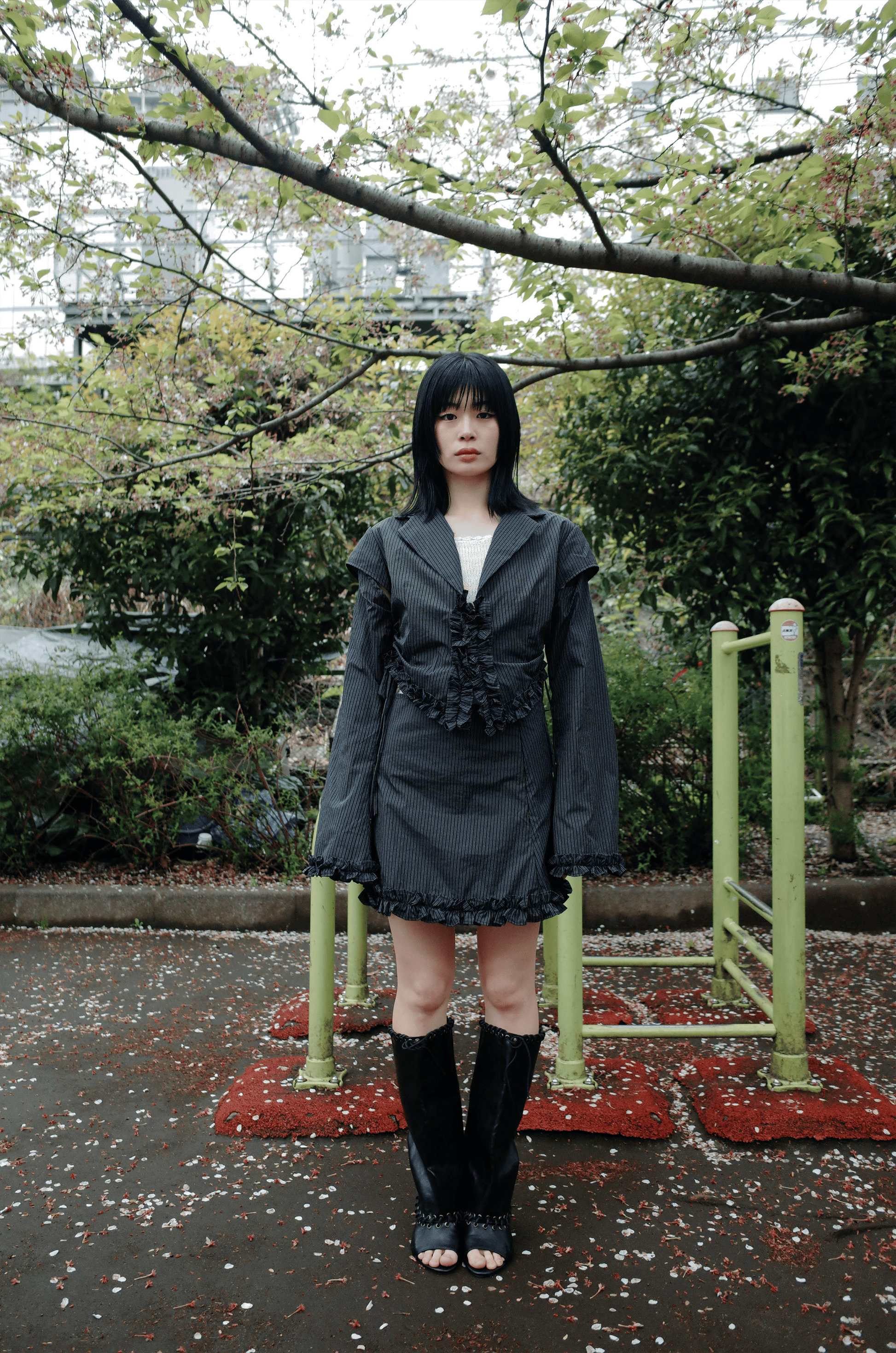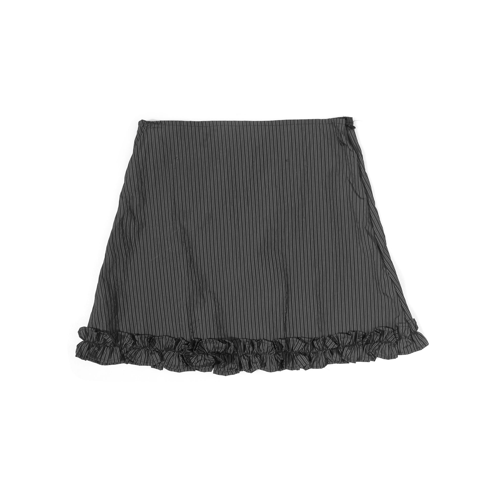 A mini skirt features a clean side zipper closure and a charming ruffle that adds a playful edge to the hemline.