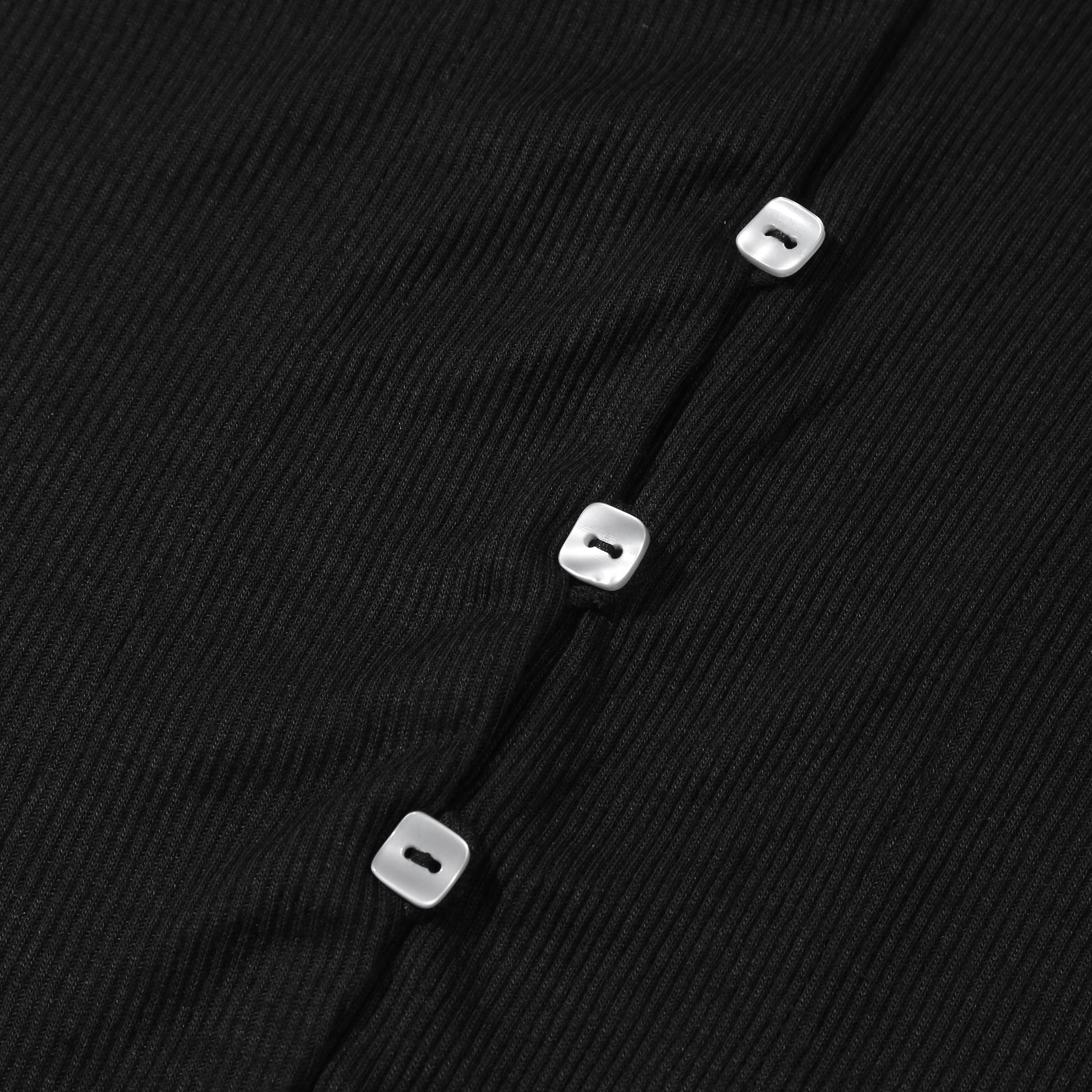 "Women's short sleeve cardigan in soft polyester knit with high neck collar and contrast button details"