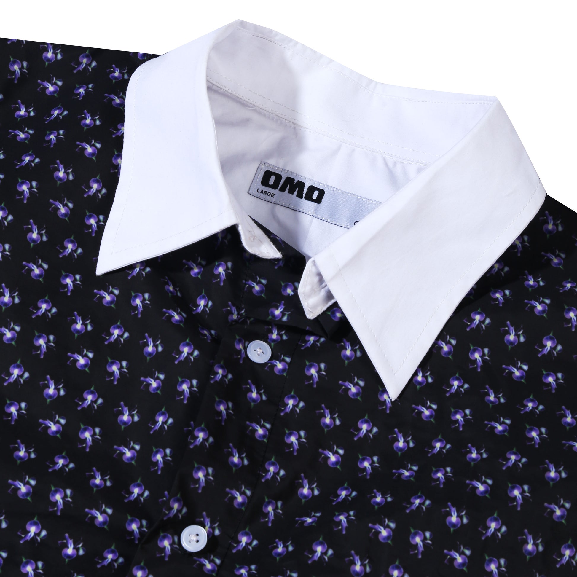 Soft, breathable, long-sleeved white shirt featuring a printed iris flower design on the front.
