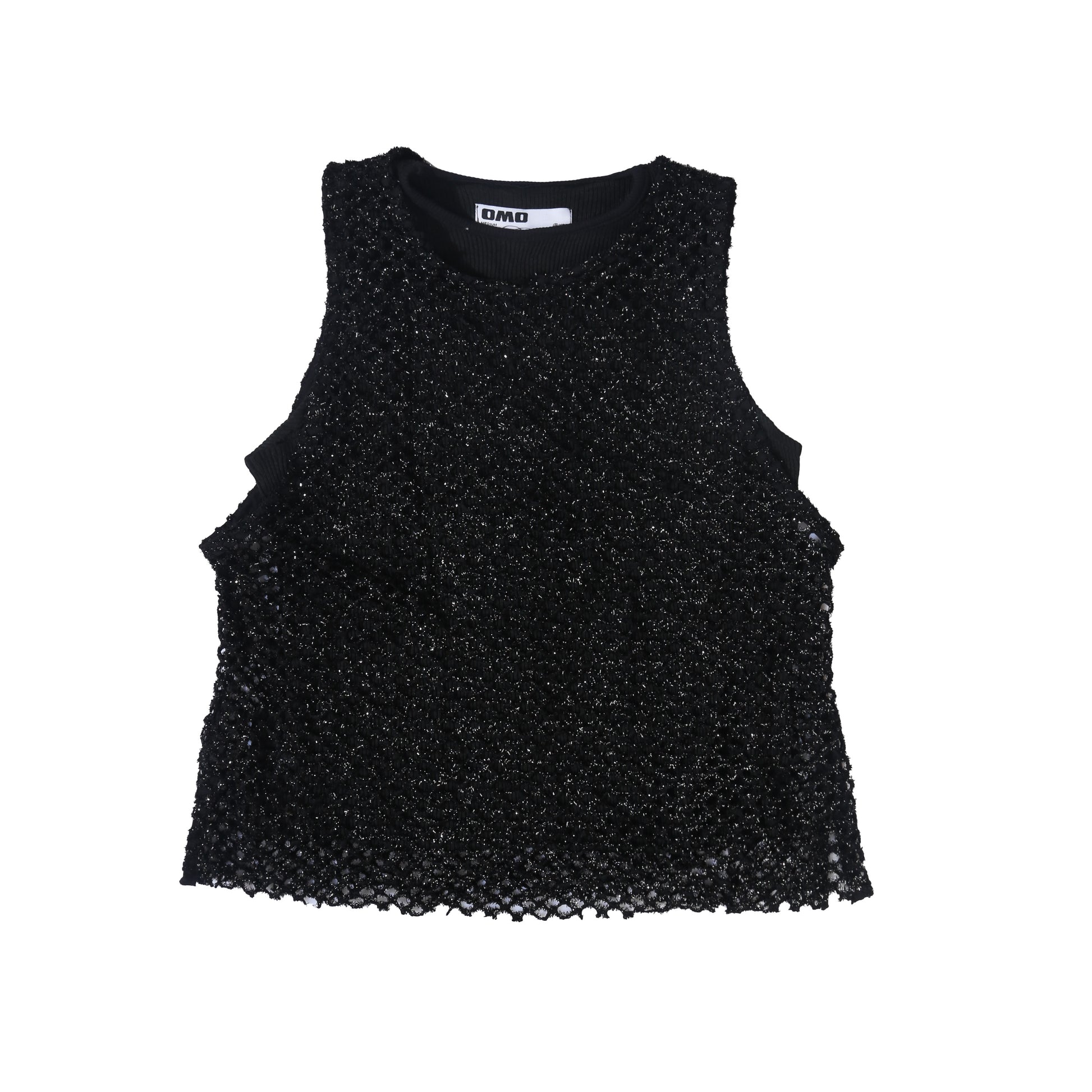 Double layered of ribbed tank top and glitter wire outer in black.