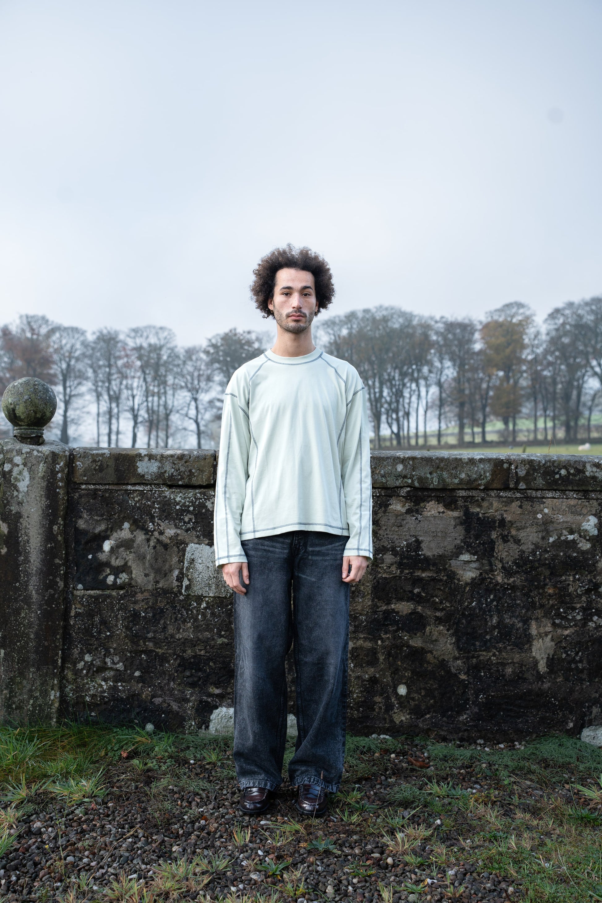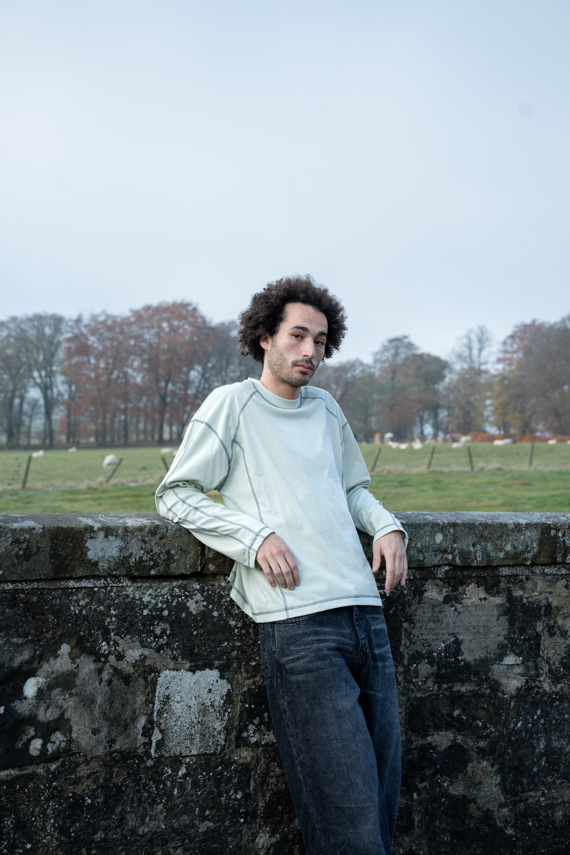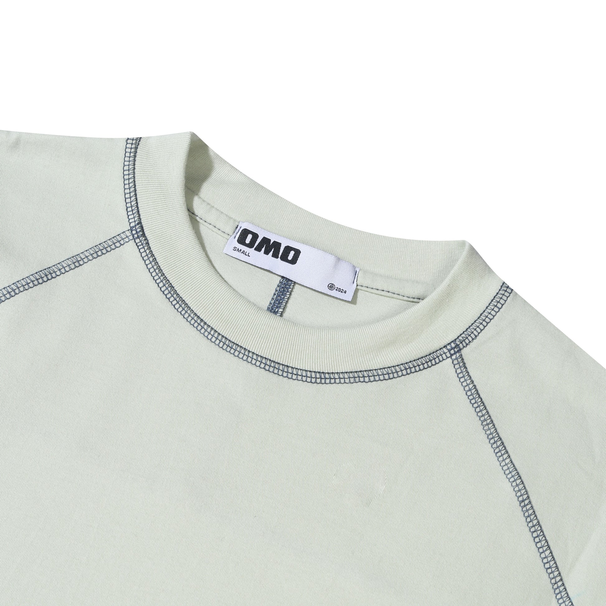 Raglan relaxed fit long sleeve tee with contrast chainstitch detail, midweight 200gsm with ribbed crewneck.