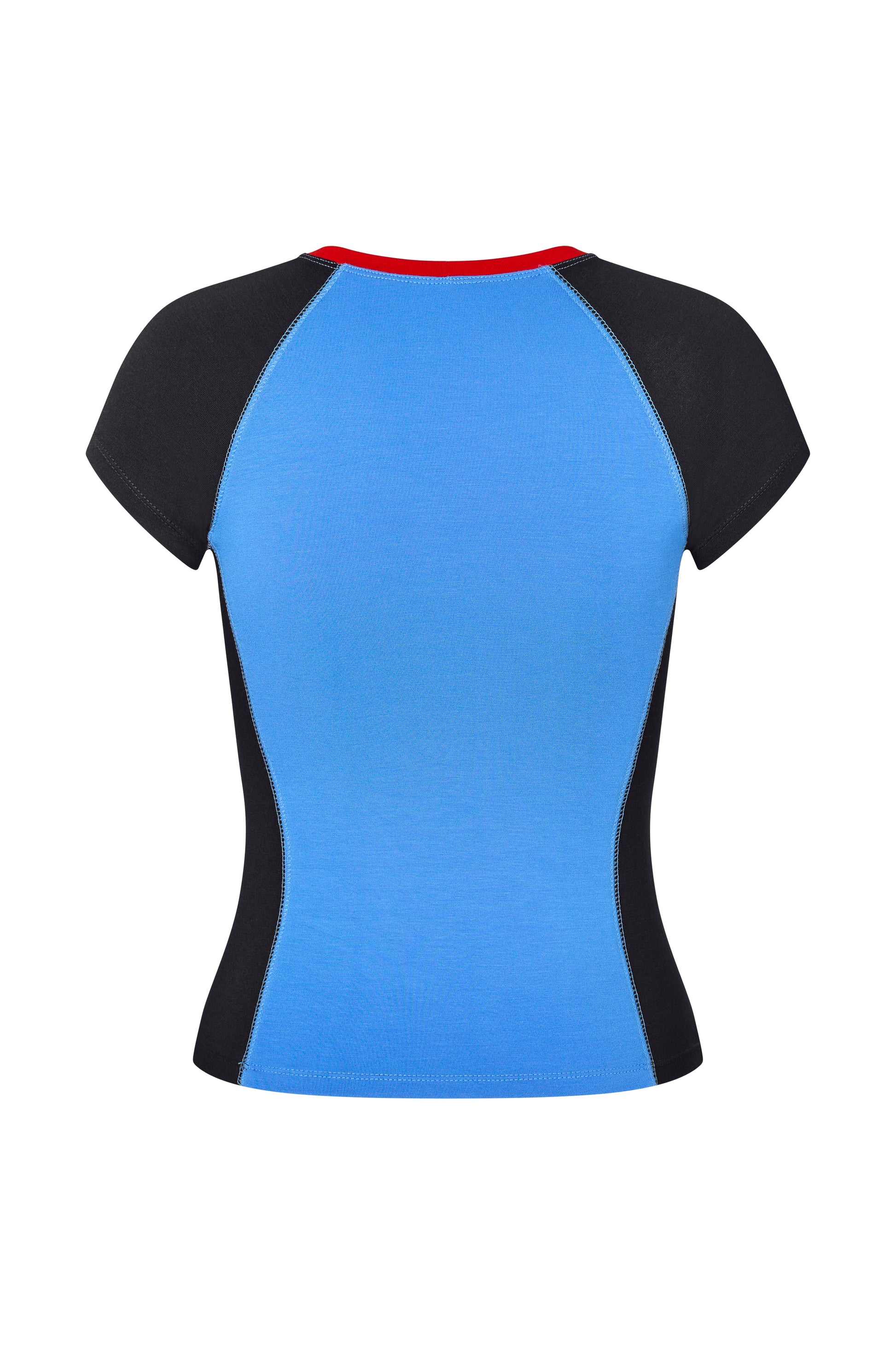 "Your not-so-basic basic. Designed with a relaxed fit and sporty raglan sleeves, it’s made from soft, breathable fabric that feels as good as it looks. Whether you’re going casual with denim, layered over skirts, or keeping it off-duty with sweats, this tee is built for endless styling.