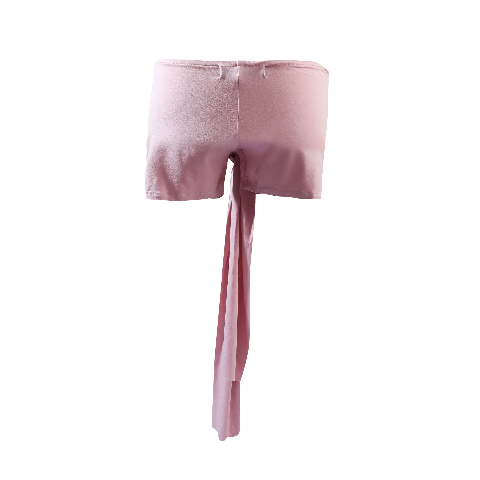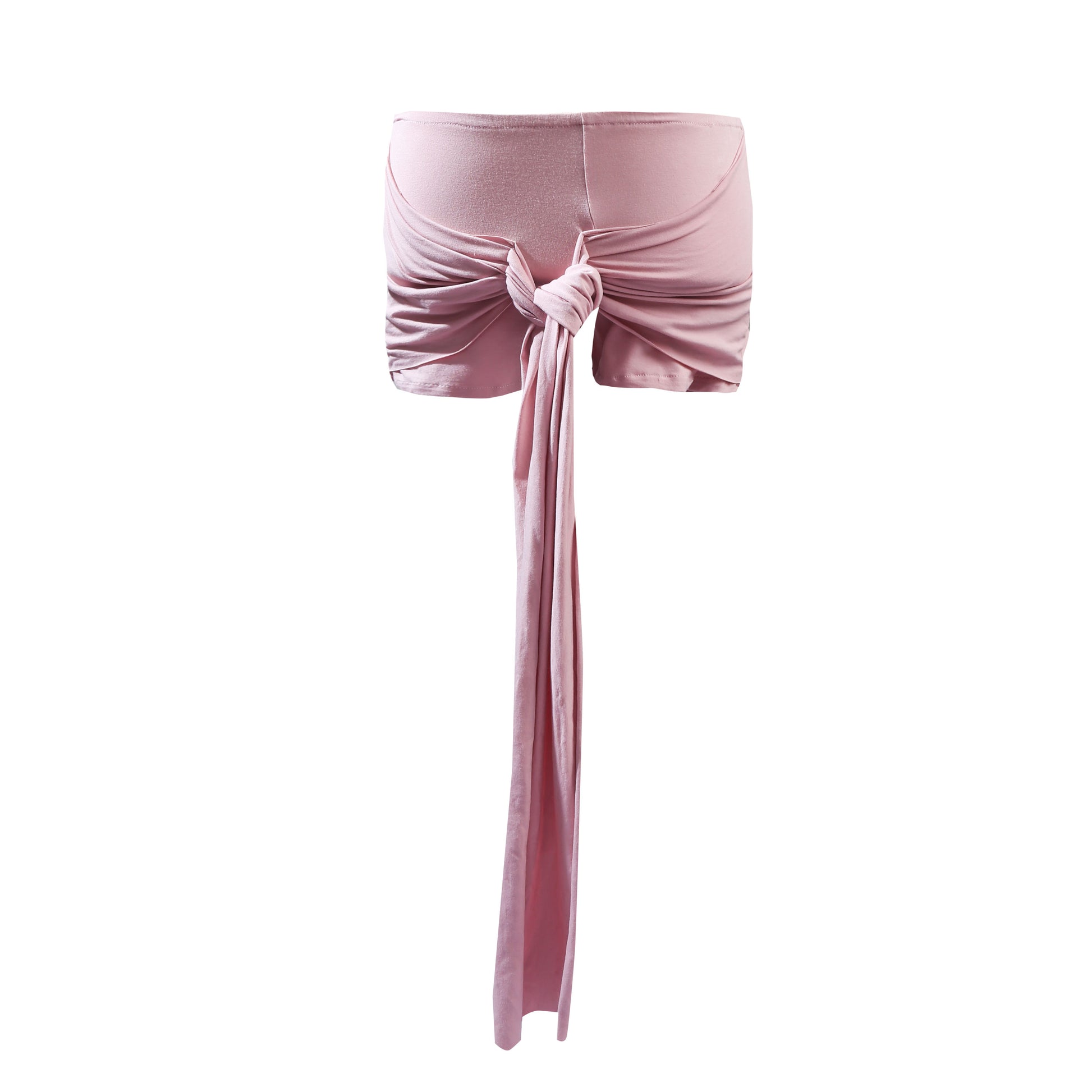 Micro shorts with elastic-band waist hem and overlength front bow.