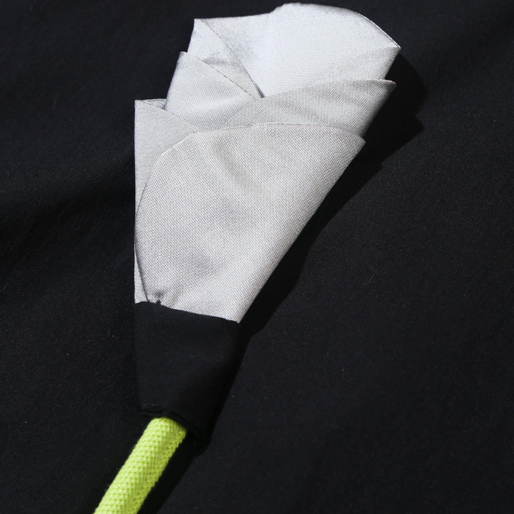 Black micro skirt with silver flower applique sewn right infront of the skirt